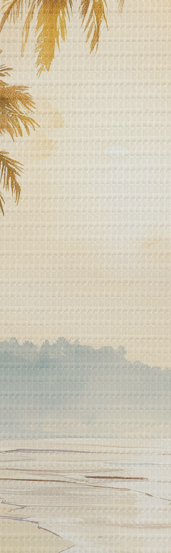 Fototapete Sonnenuntergang am Strand einer Insel im Aquarellstil s47136