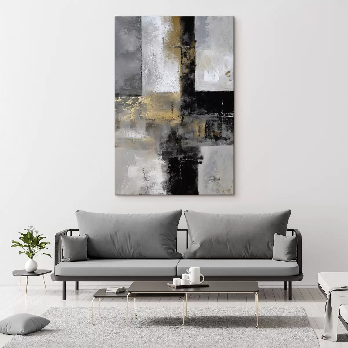 Gemälde zeitgenössische strukturelle Abstraktion in Schwarz-, Grau- und Weißtönen Art. s47140