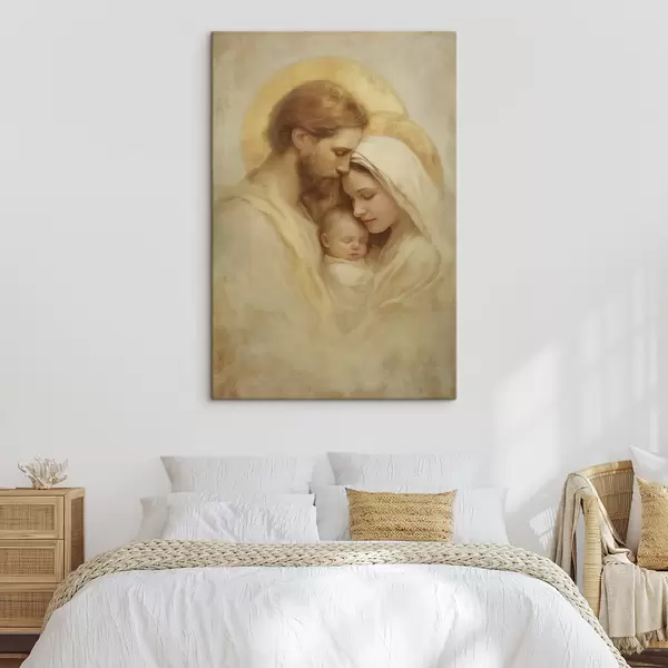 Fototapete Die Jungfrau Maria und Josef mit dem Jesuskind im Stil eines alten Freskos s47141