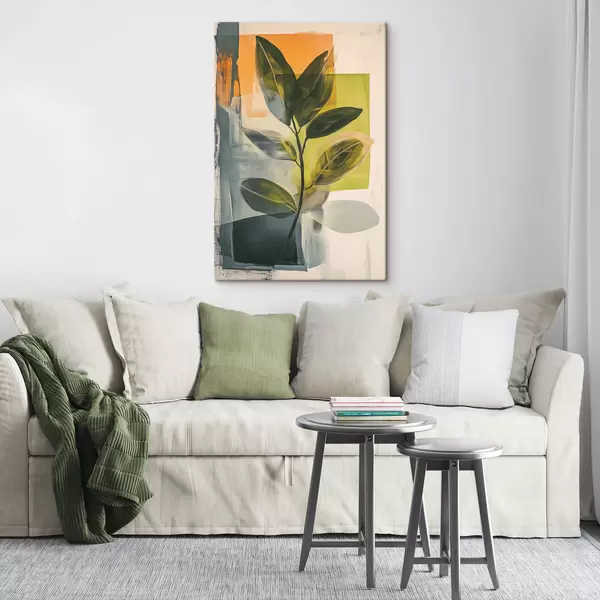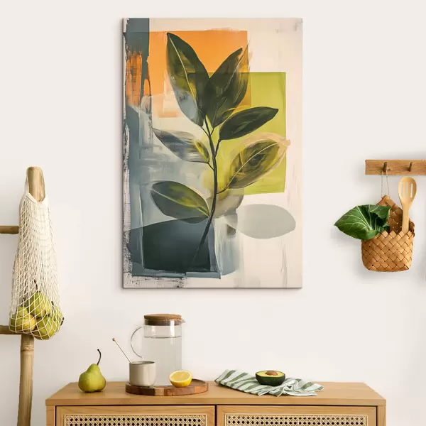 Gemälde Ein Zweig mit Blättern vor einem abstrakten Hintergrund Art. s47249