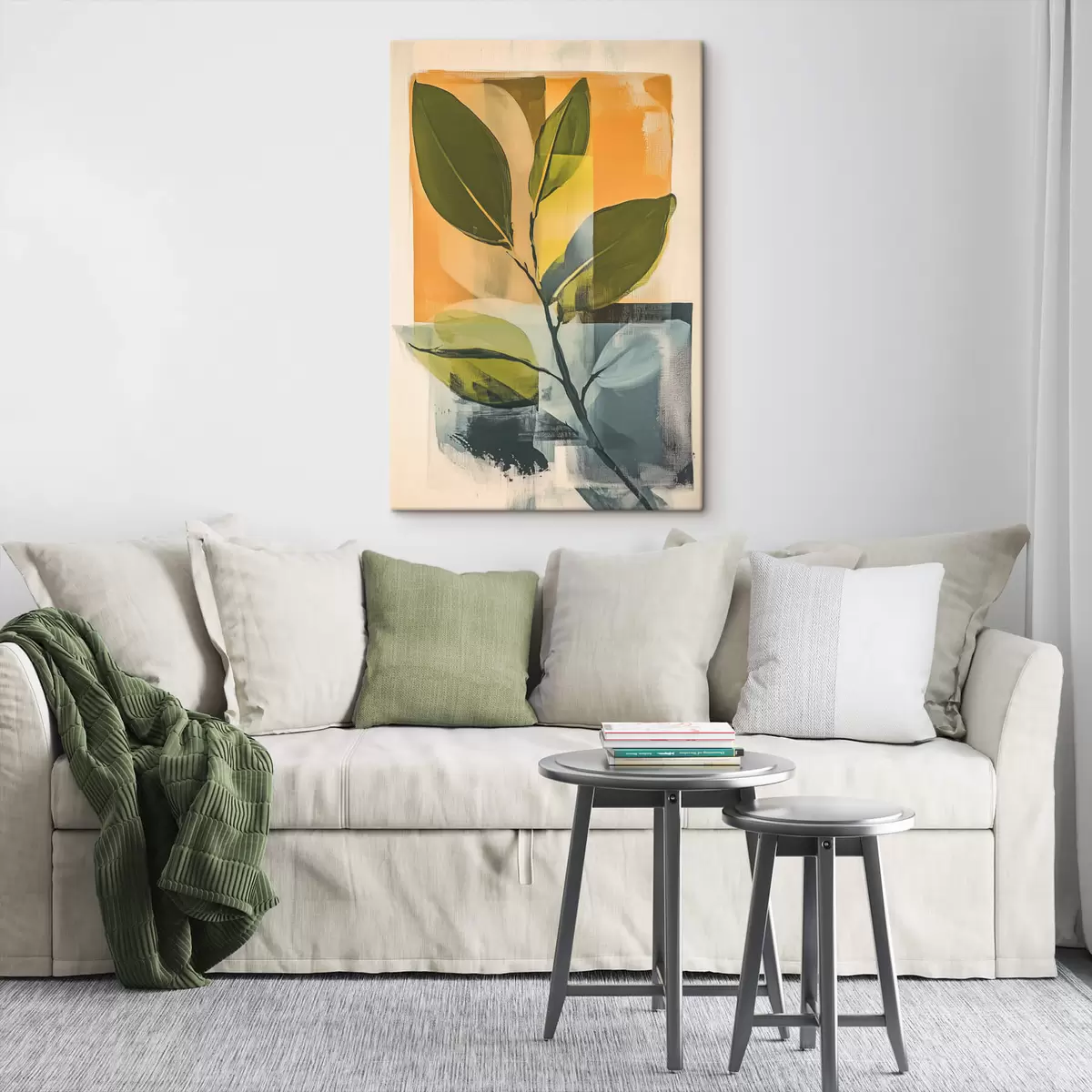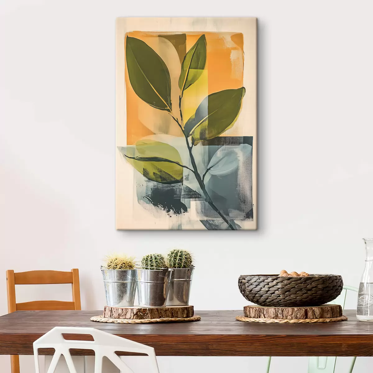 Gemälde Ein Zweig mit Blättern vor einem abstrakten Hintergrund Art. s47250