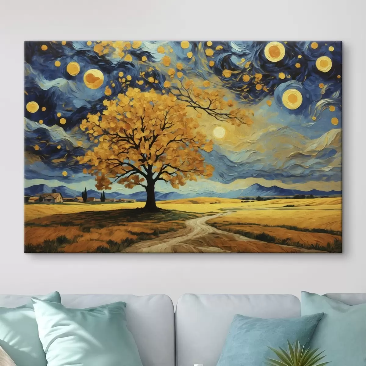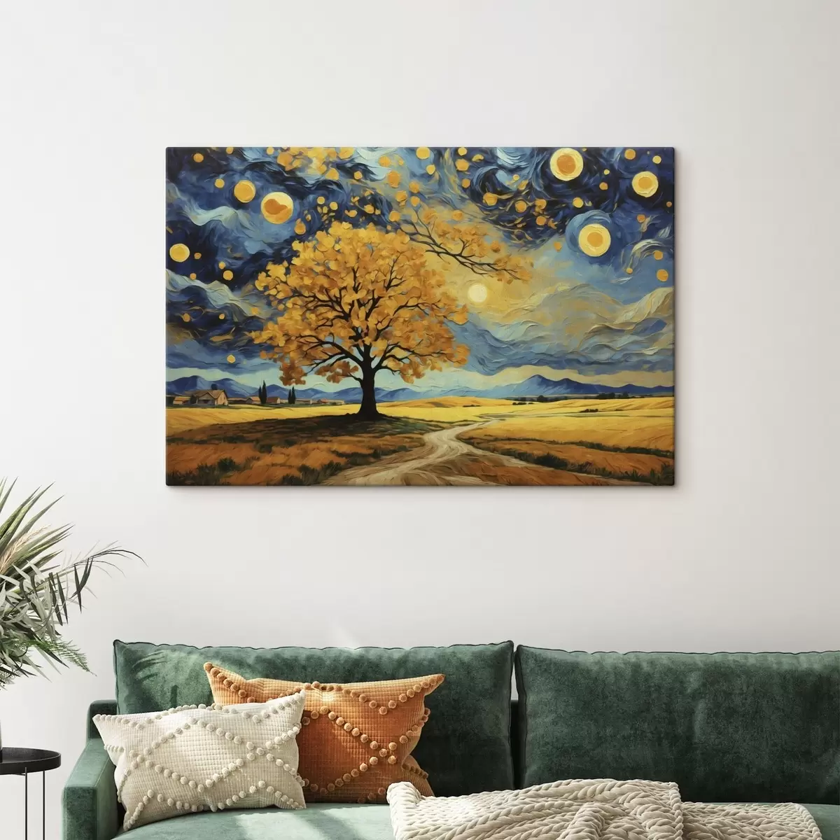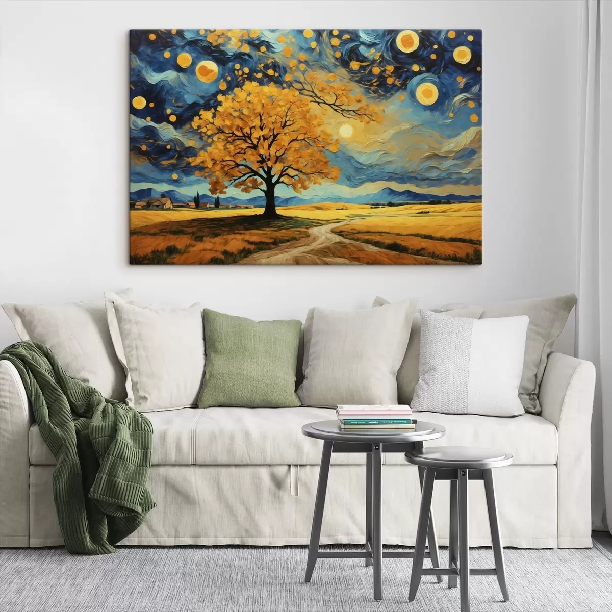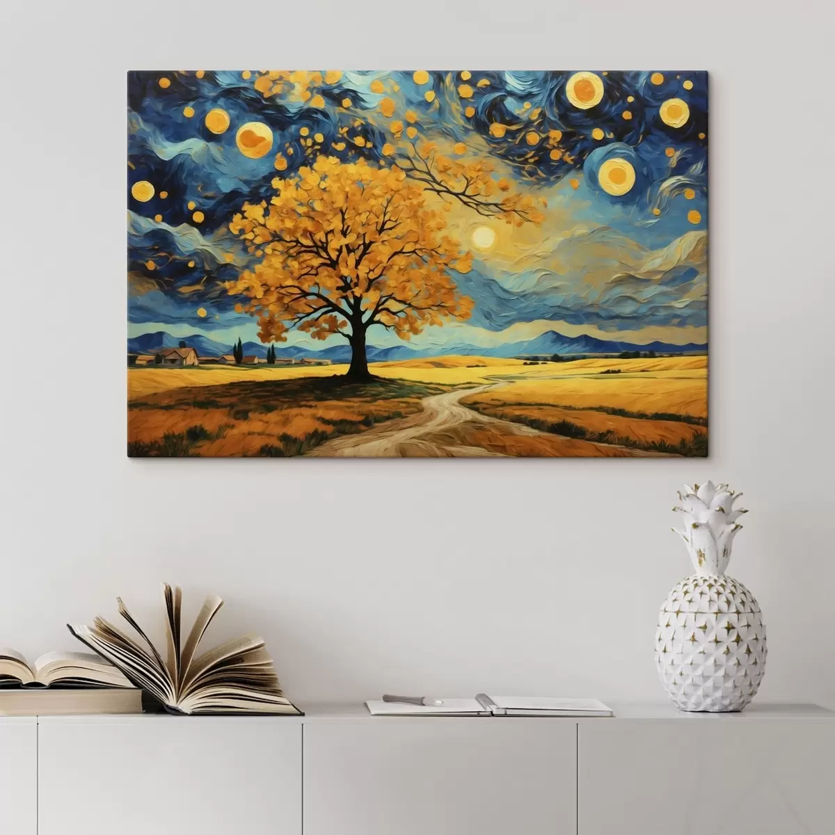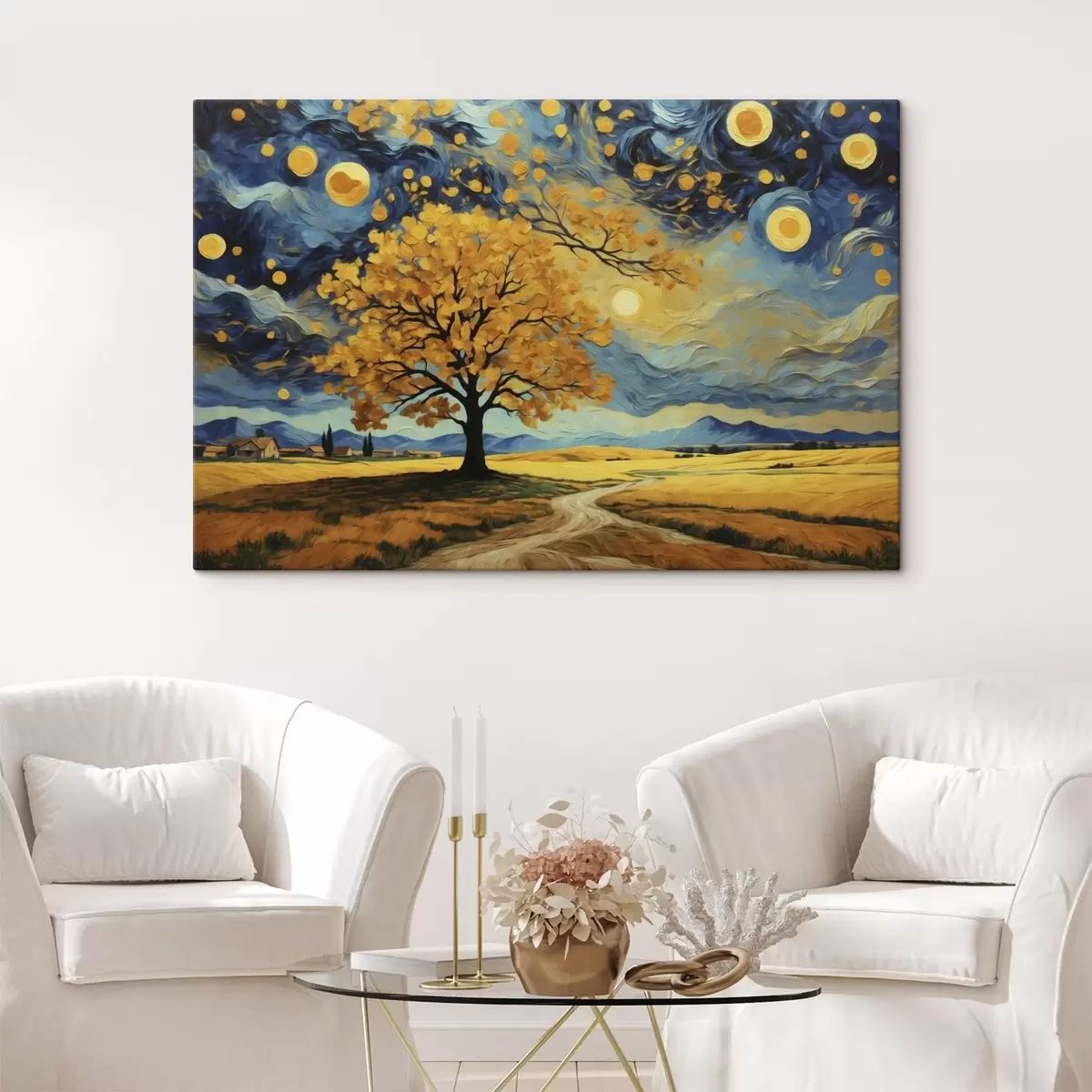 Gemälde Landschaft mit einem Baum und einem leuchtenden Sternenhimmel Art. s47255