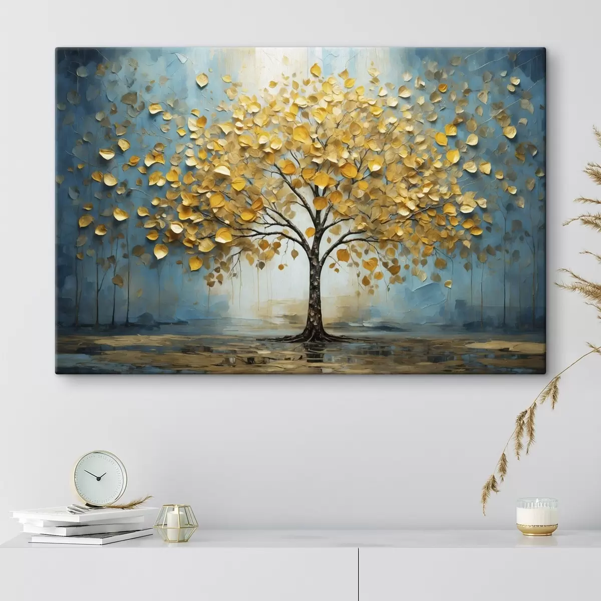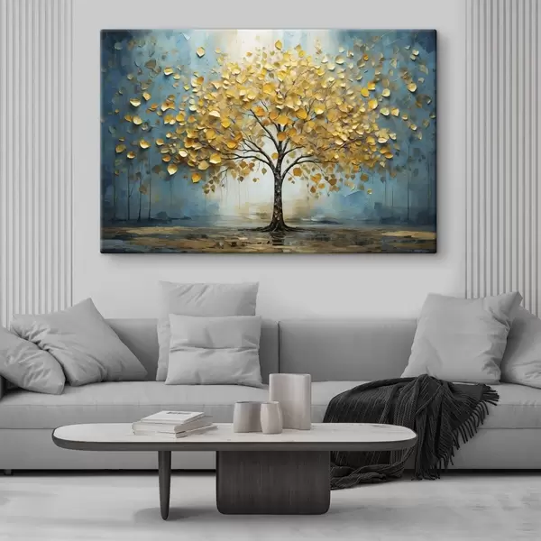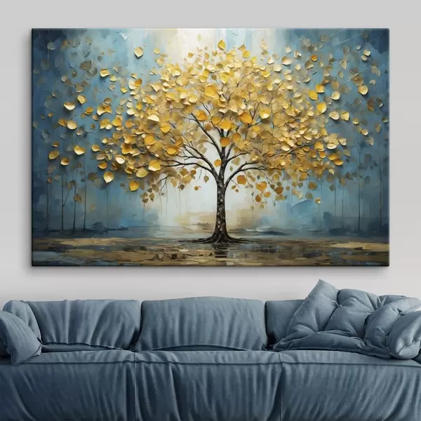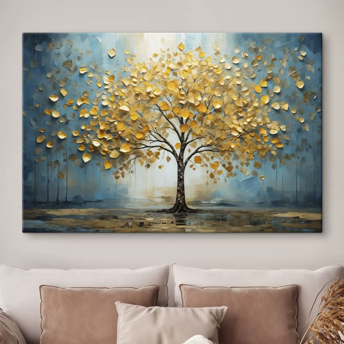 Gemälde Baum mit gelben Blättern vor blauem Hintergrund Art. s47256