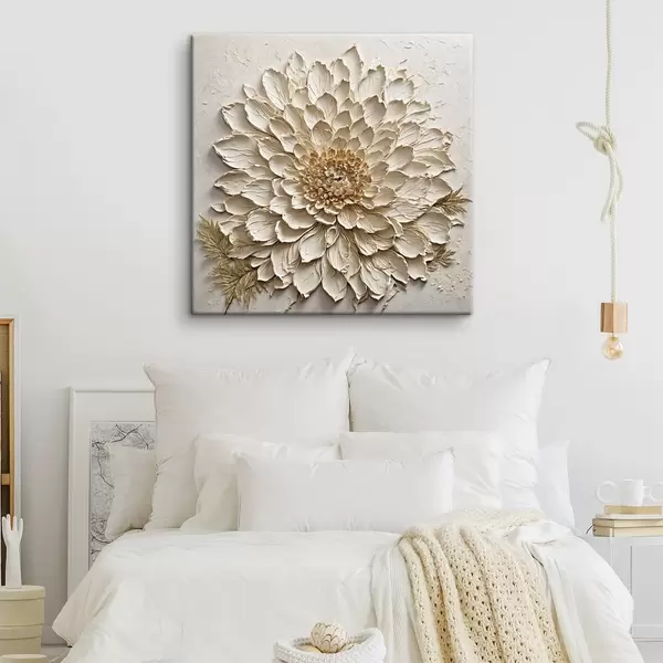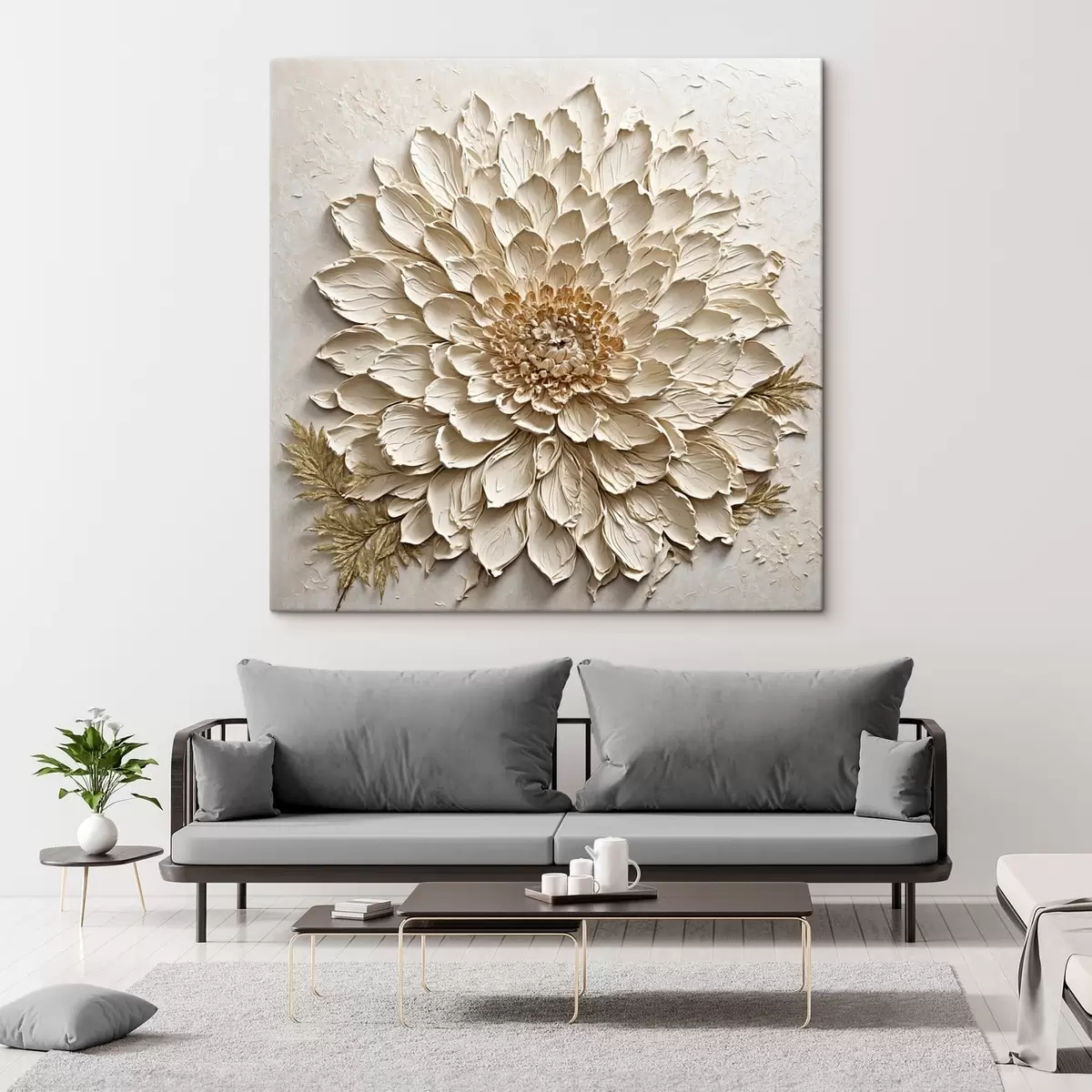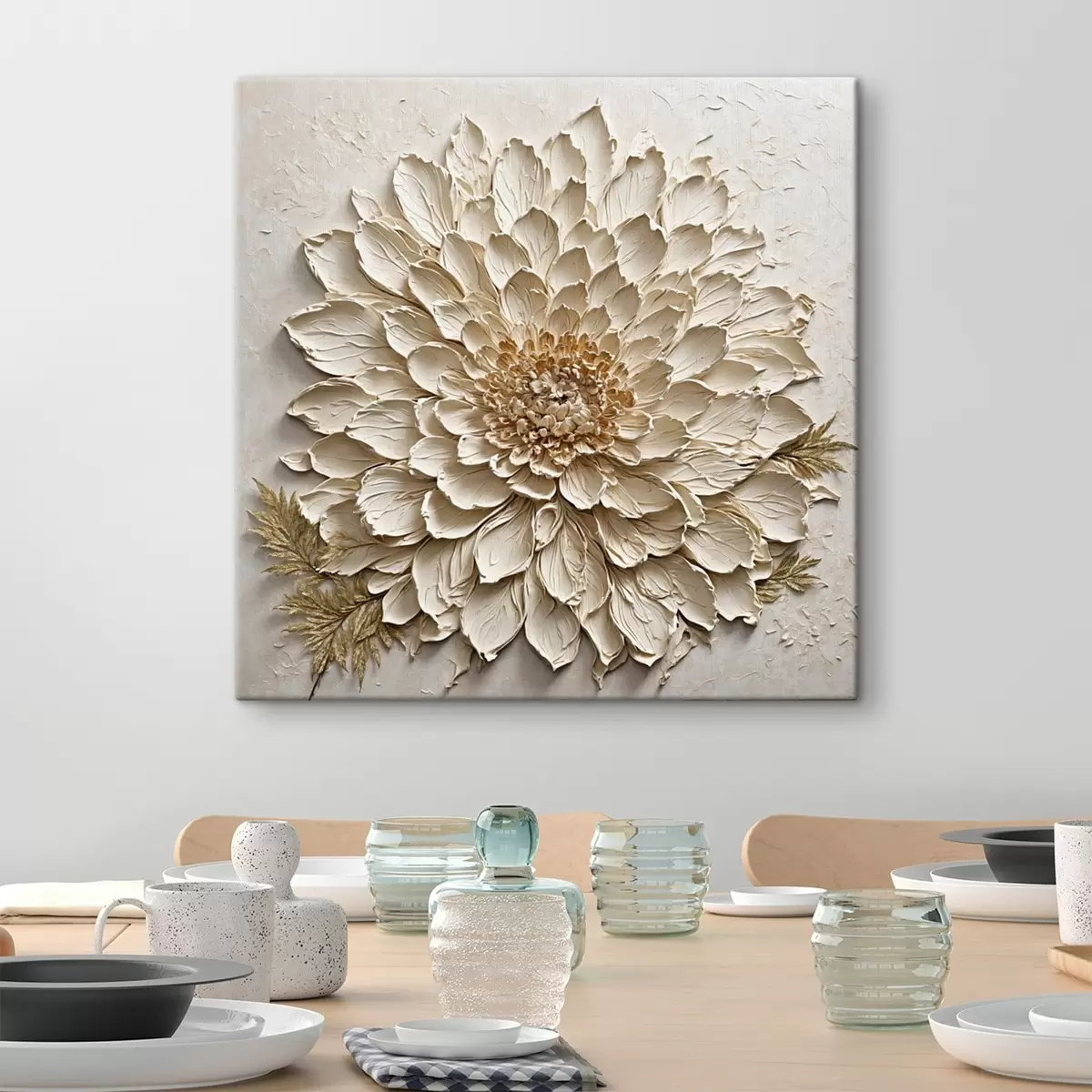 Gemälde Strukturierte Blume in Cremetönen Art. s47259