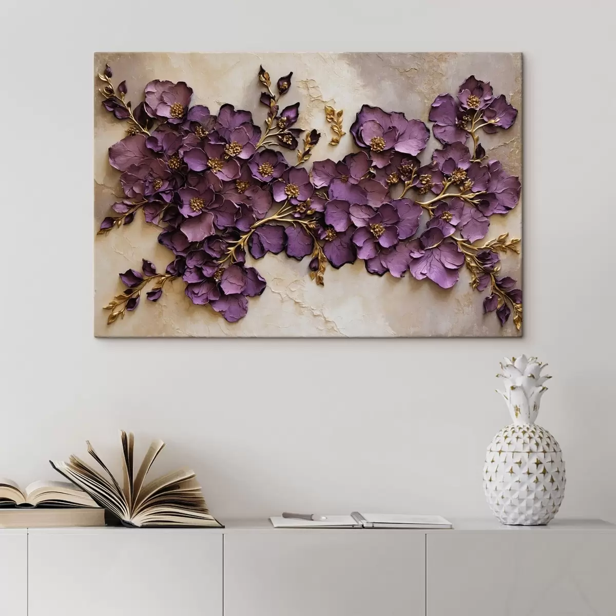 Gemälde Arrangement aus violetten Blumen mit Akzenten Art. s47277