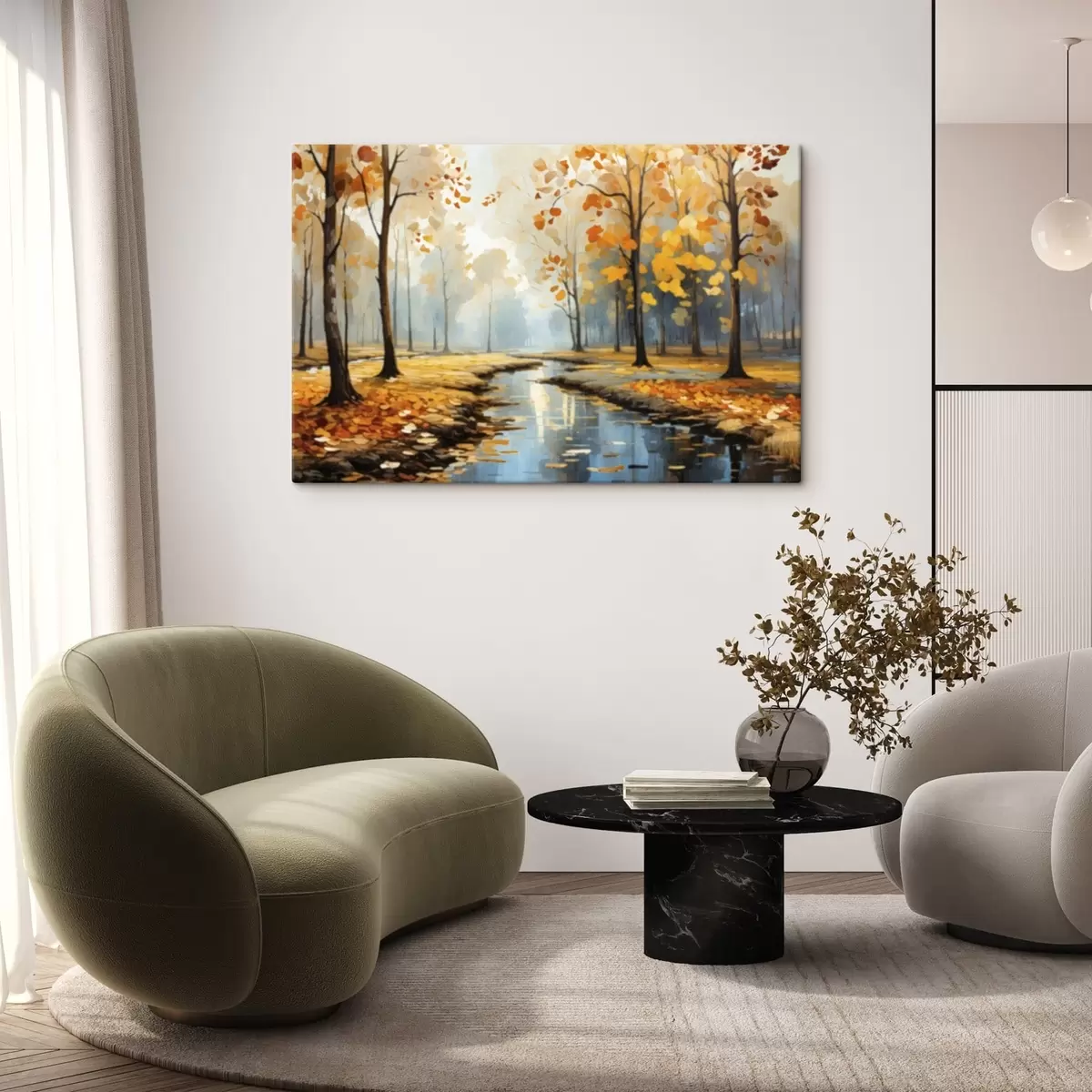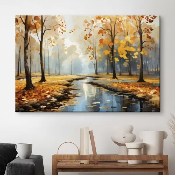 Gemälde Herbstwald mit Bach und gelben Blättern Art. s47278