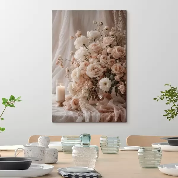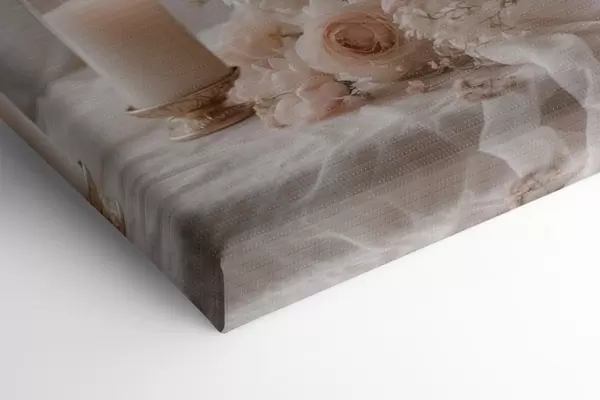 Gemälde Cremefarbene Blumen neben einer brennenden Kerze Art. s47281