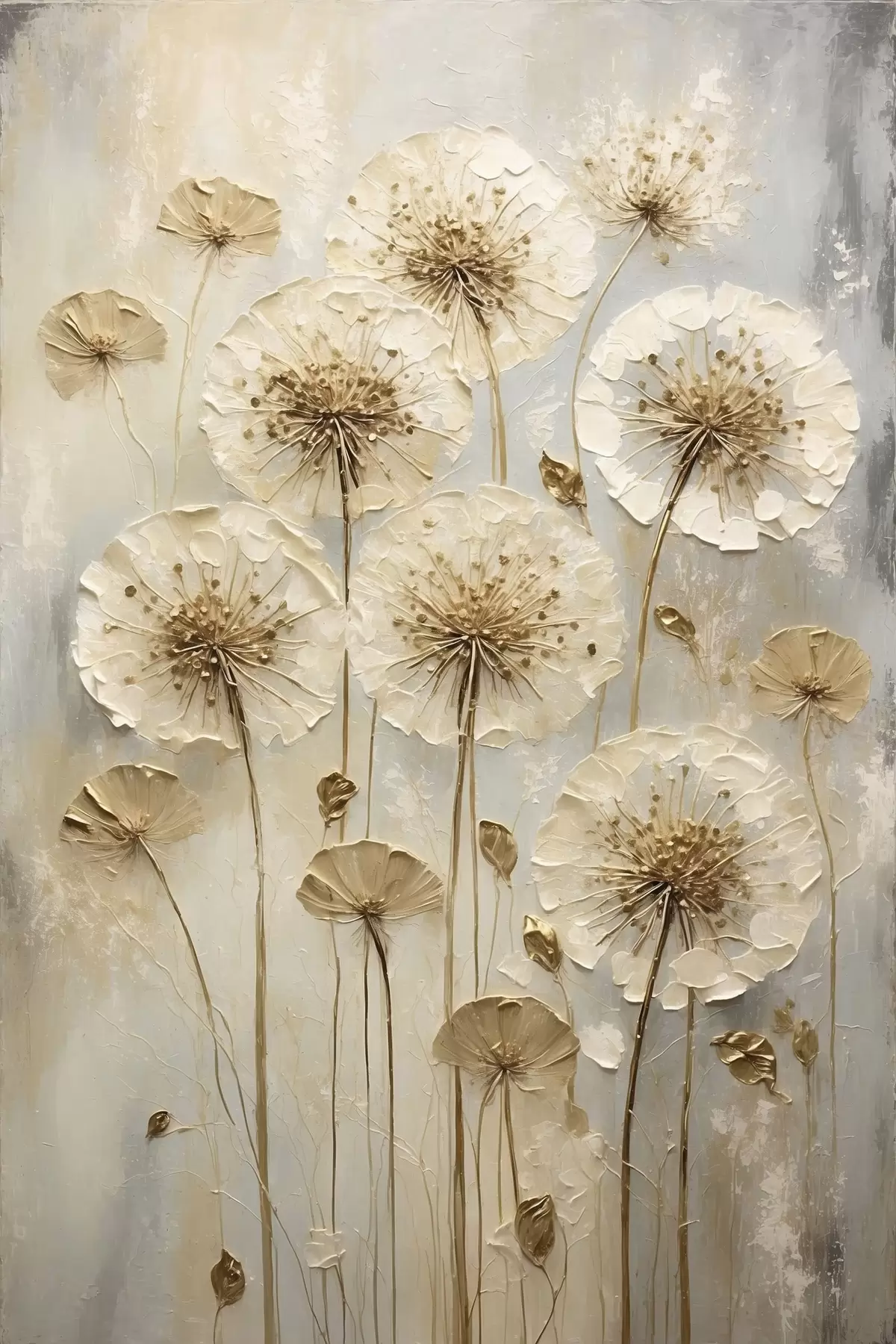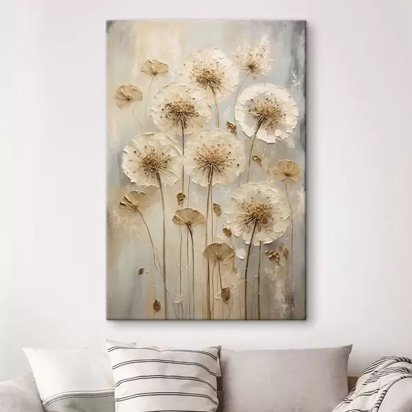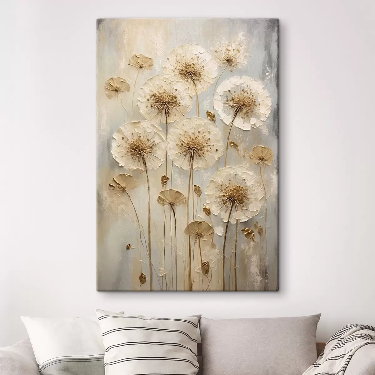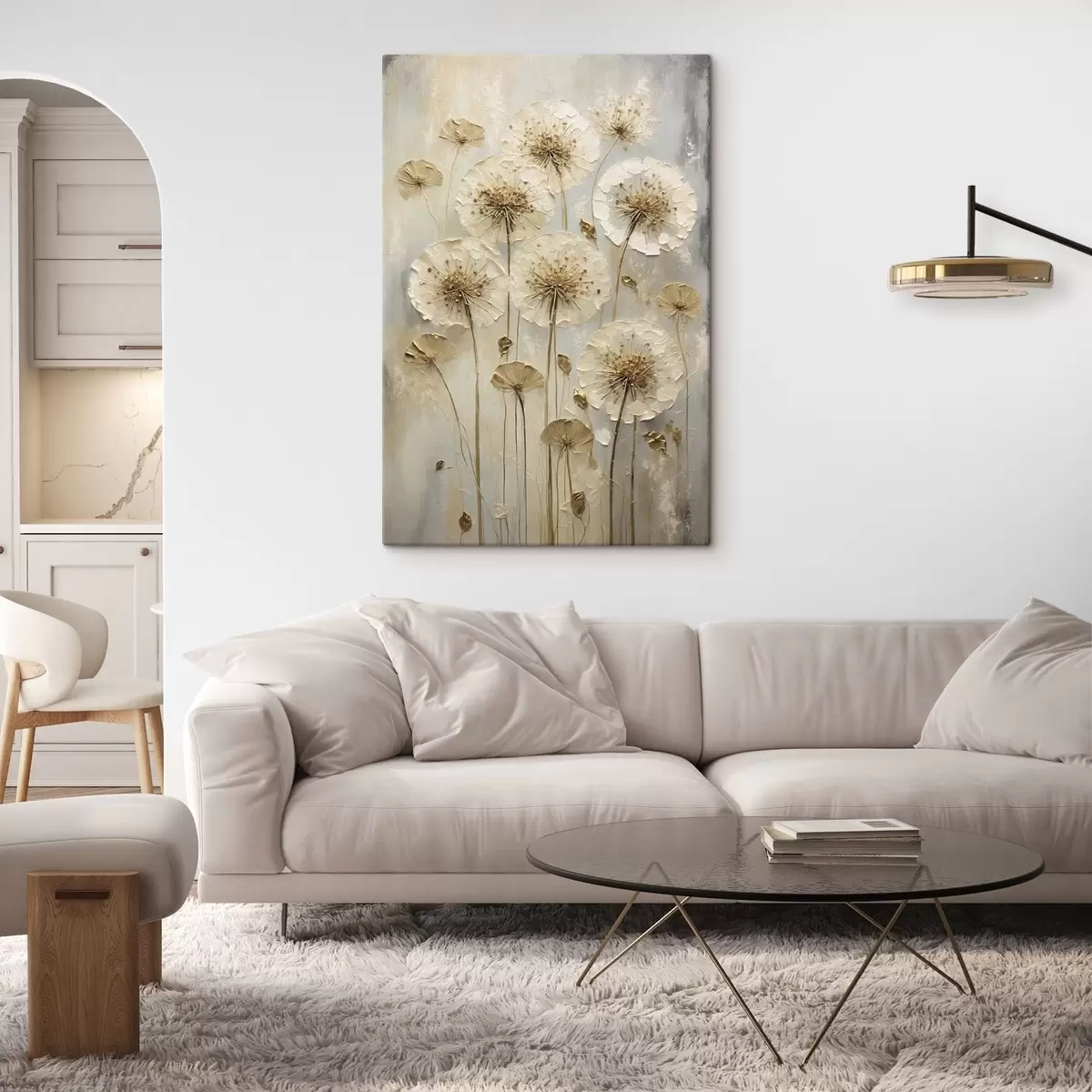 Gemälde Hohe cremefarbene Blumen auf hellem Hintergrund Art. s47282