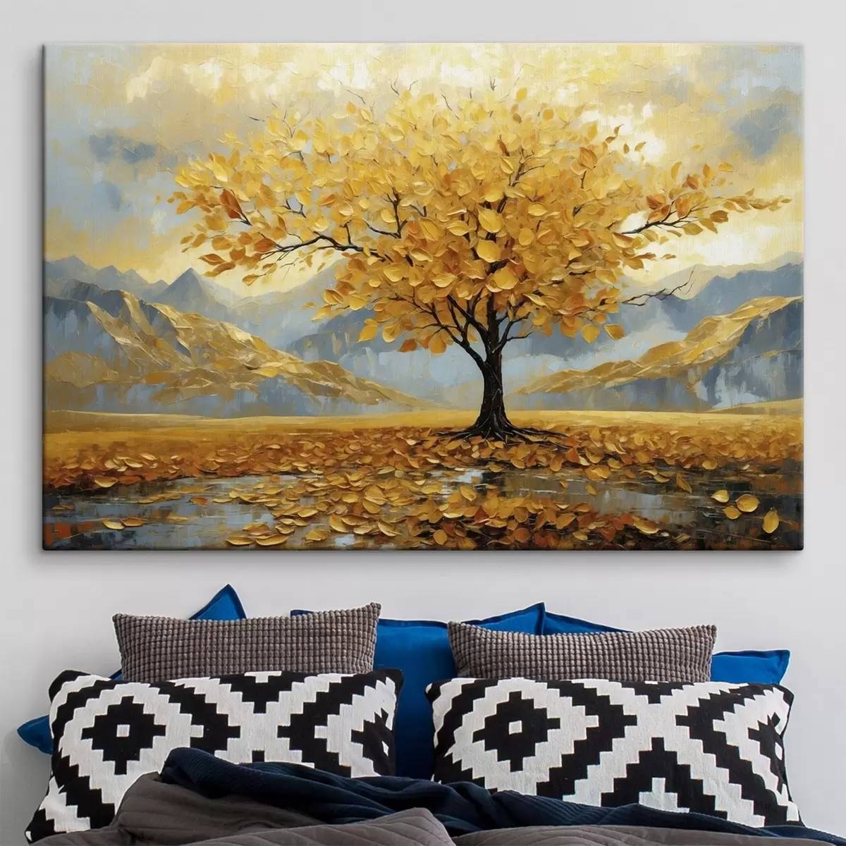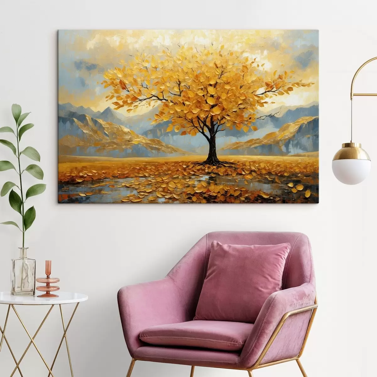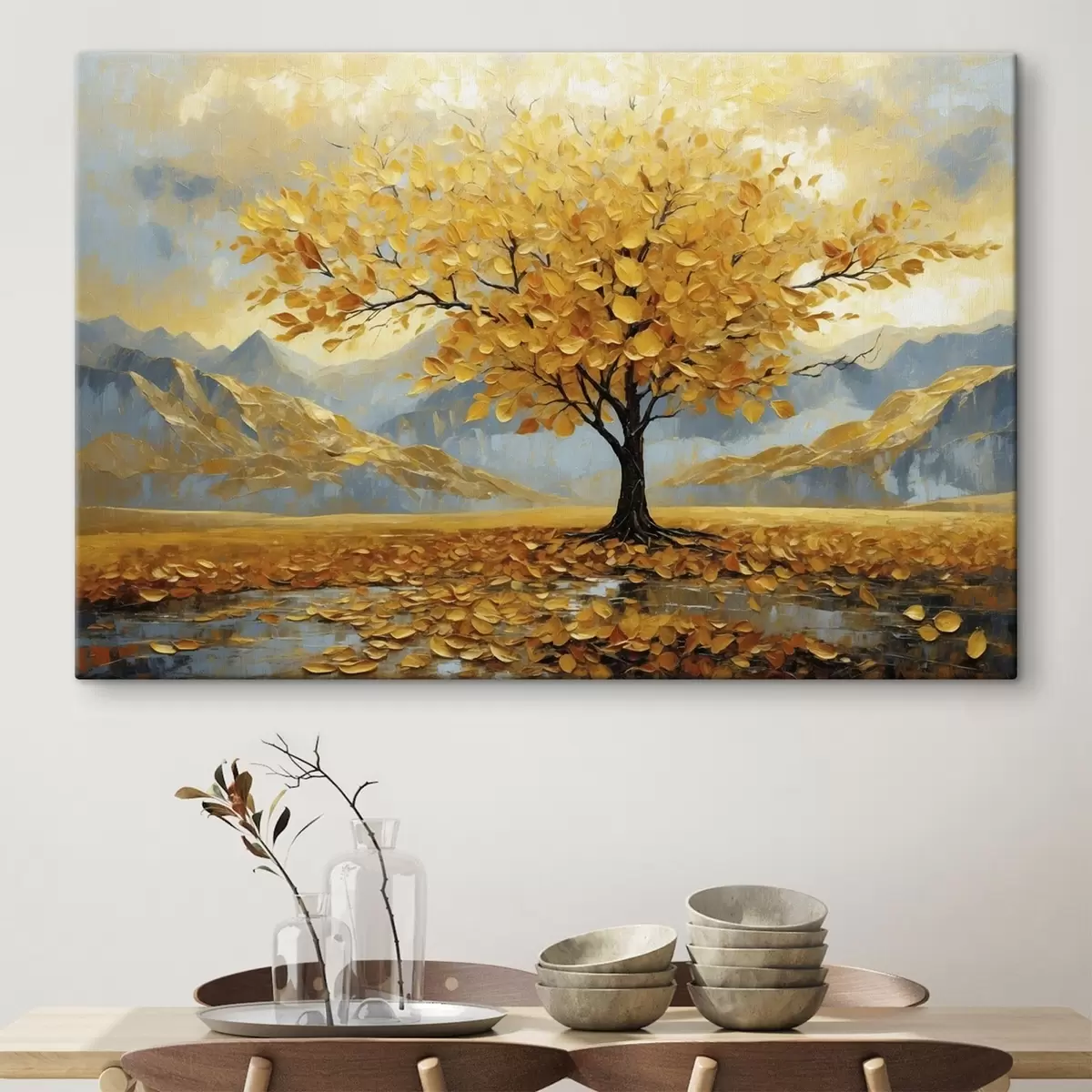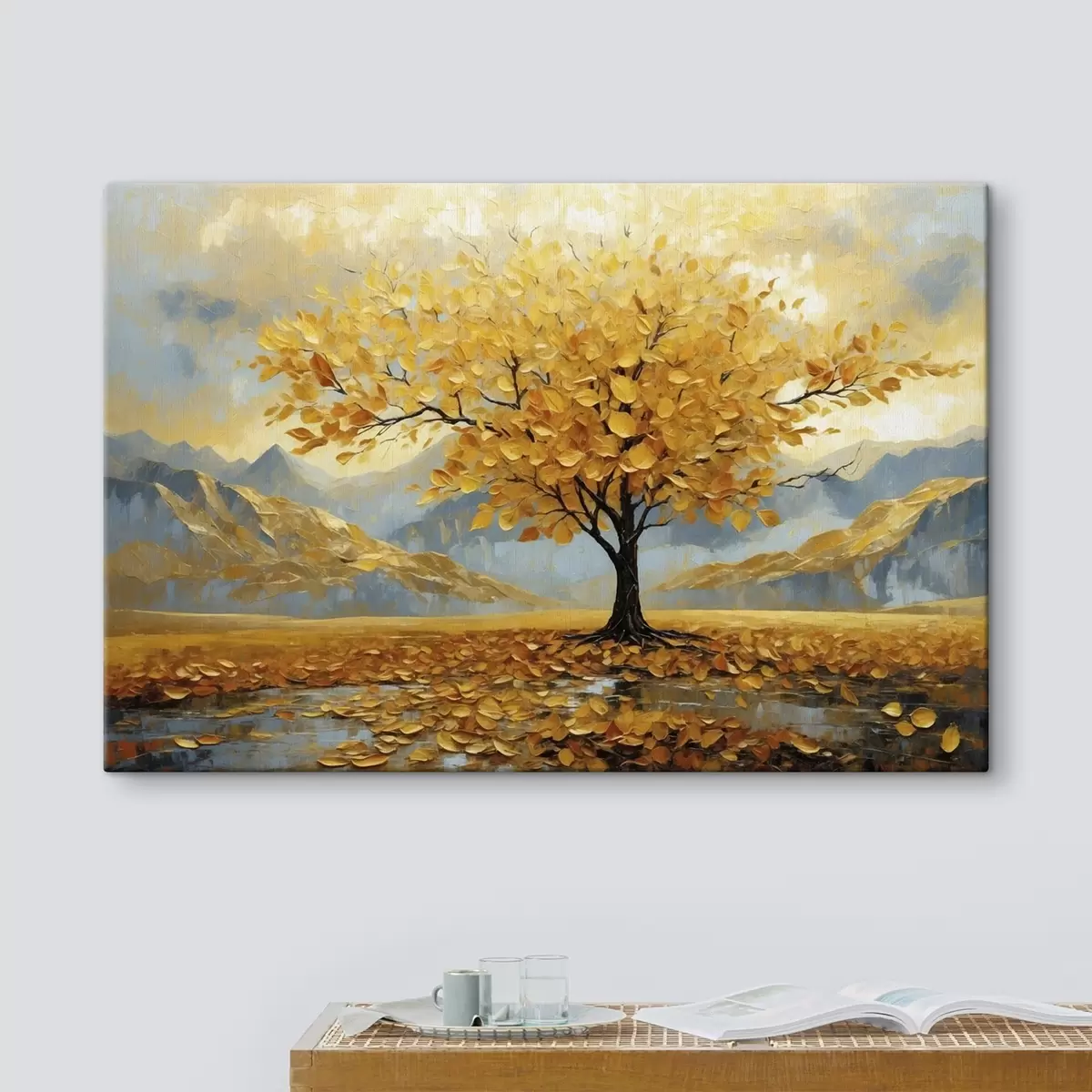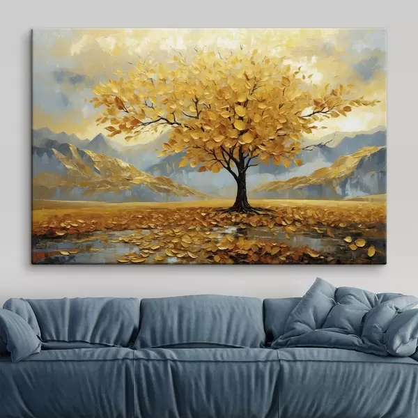 Gemälde Baum mit gelben Blättern in einer Berglandschaft Art. s47285