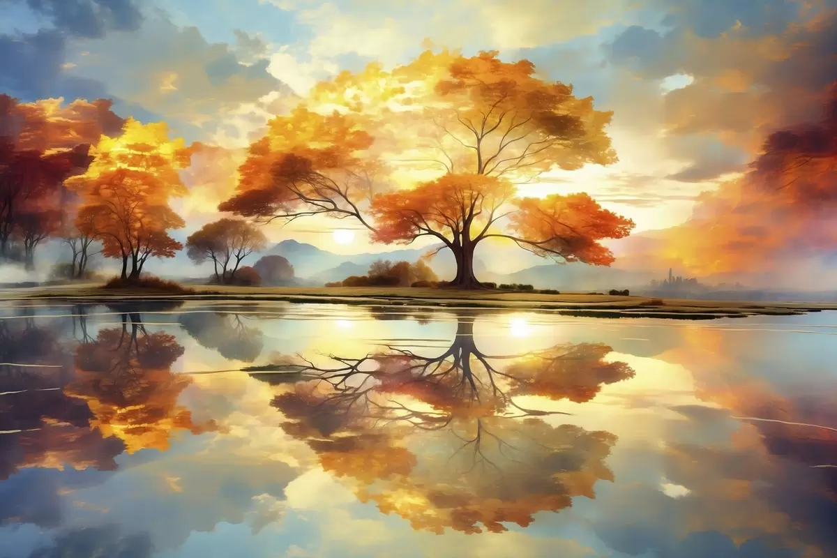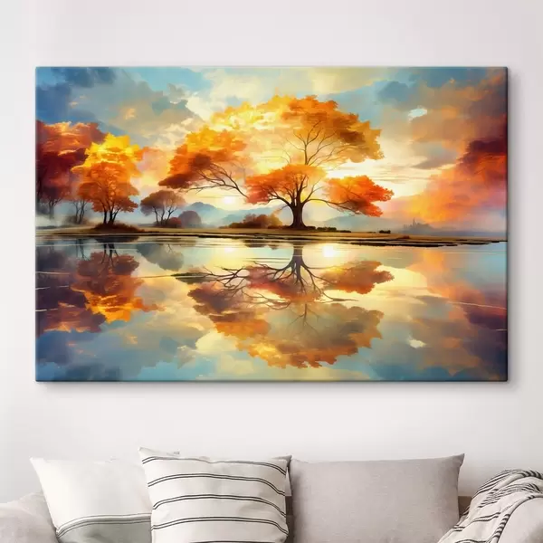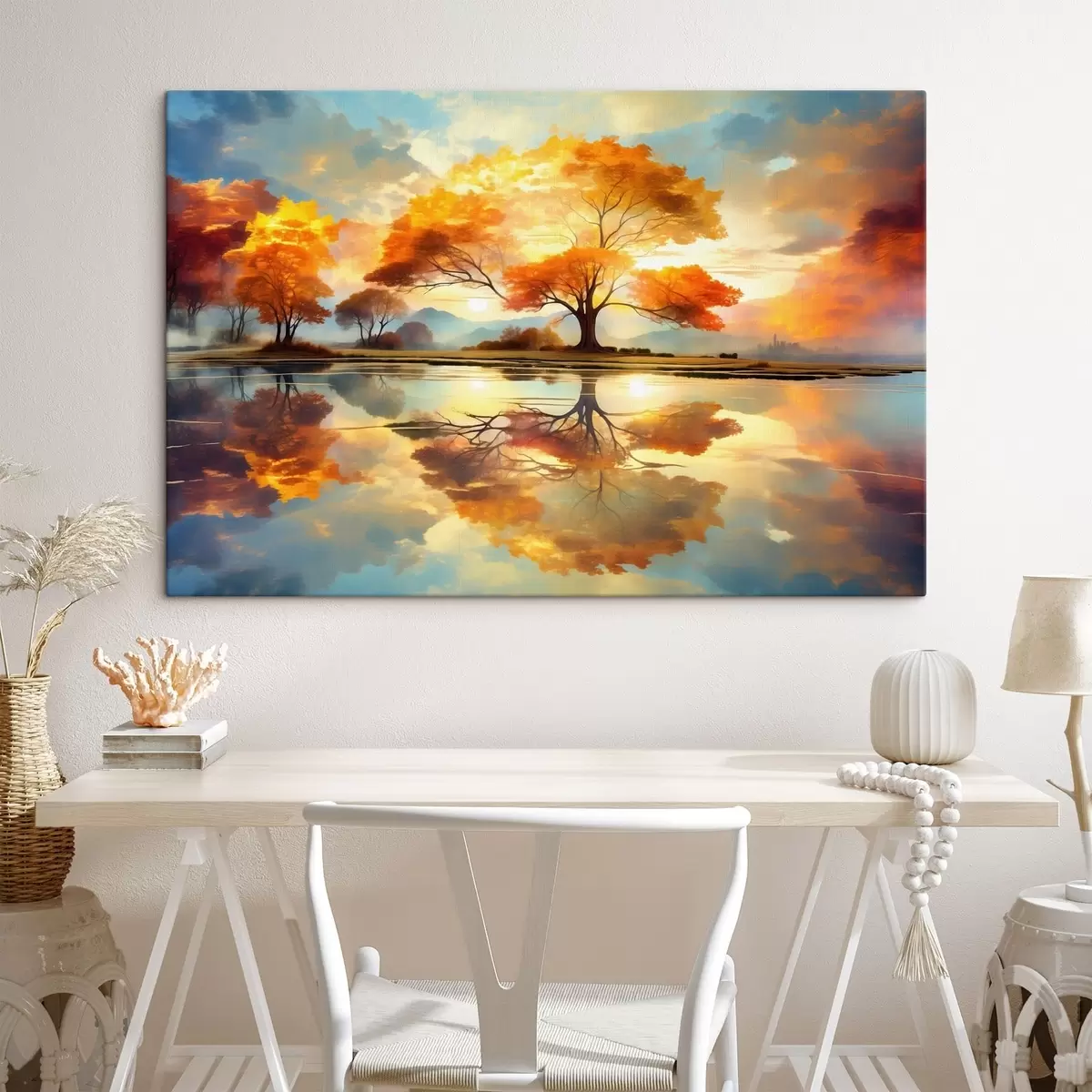 Gemälde Lebendige Bäume spiegeln sich im Wasser Art. s47287