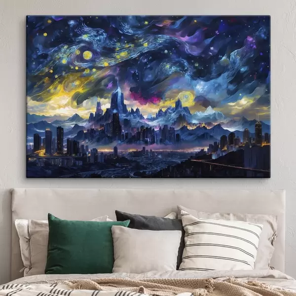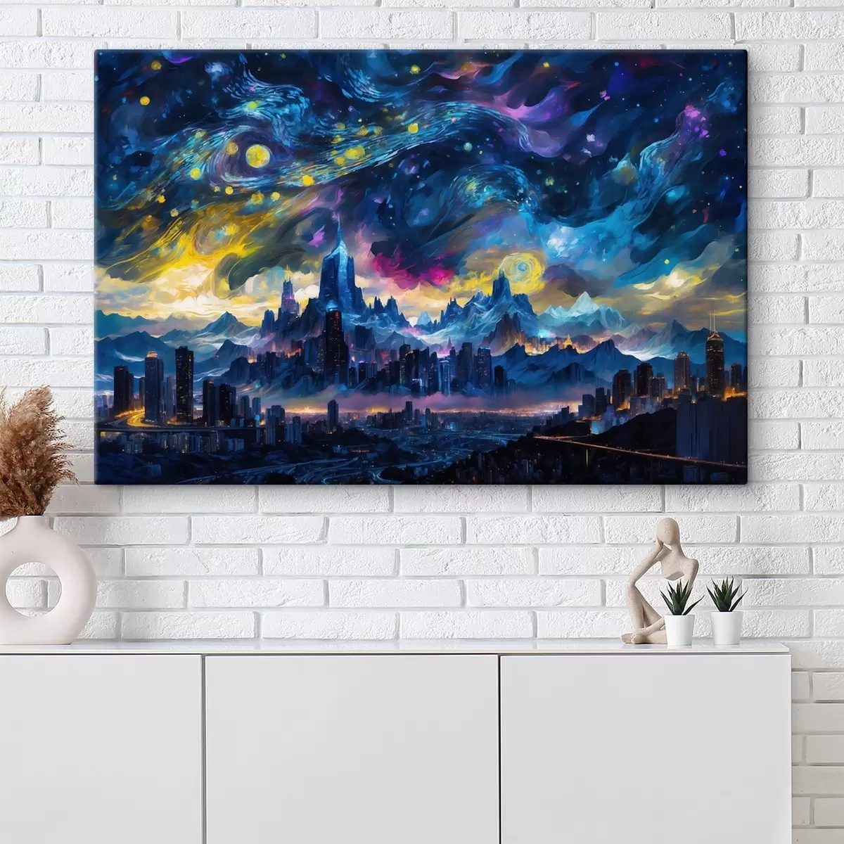 Gemälde Fantasie-Stadt unter einem leuchtenden Nachthimmel Art. s47288