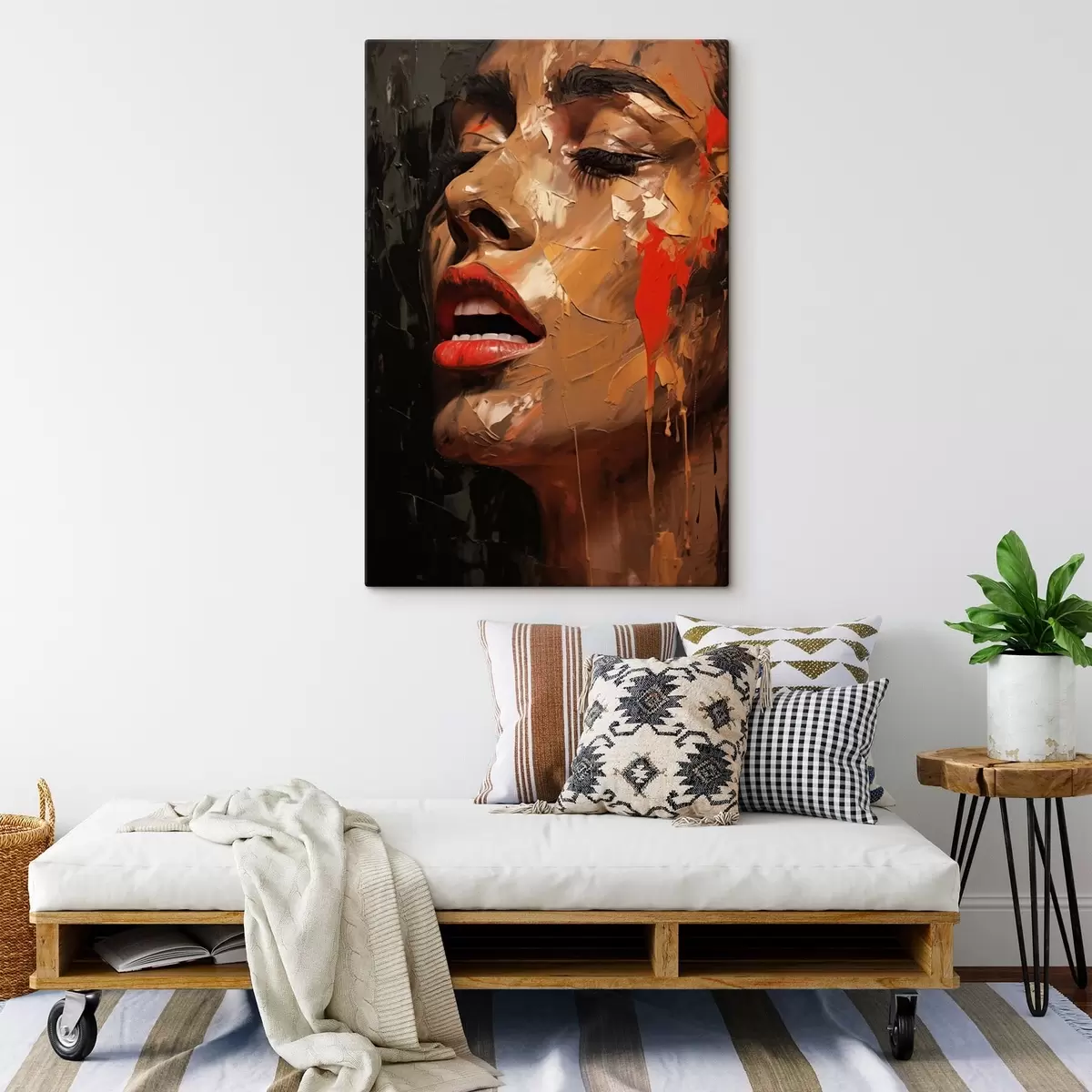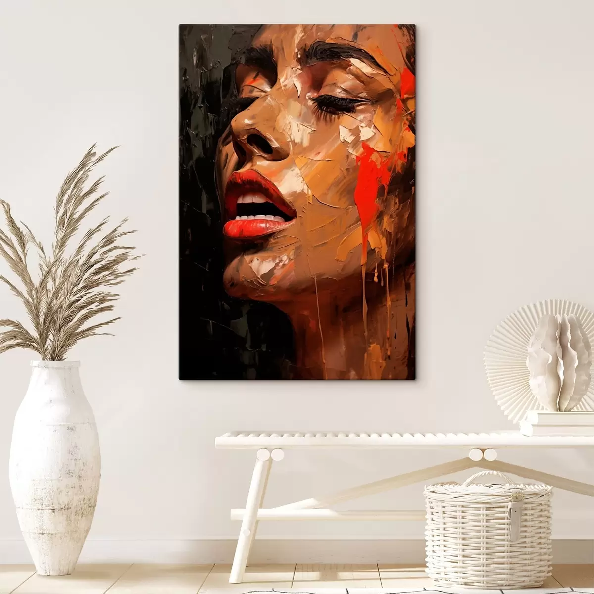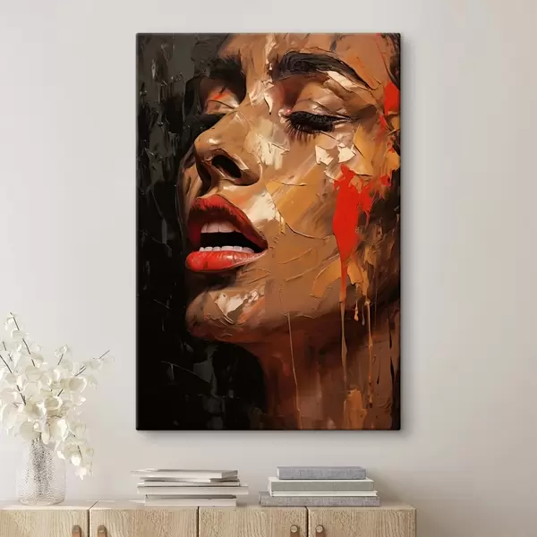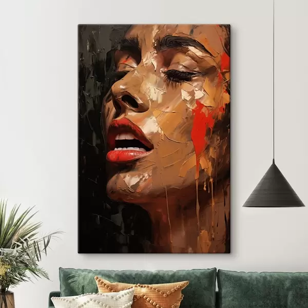 Fototapete Frauenporträt in warmen Strichen und Rottönen s47294