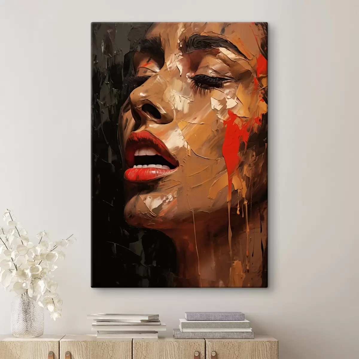 Gemälde Frauenporträt in warmen Strichen und Rottönen Art. s47294