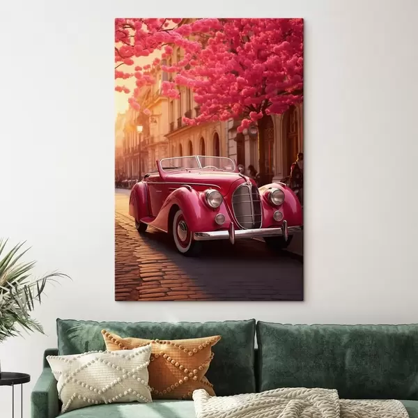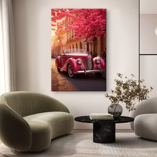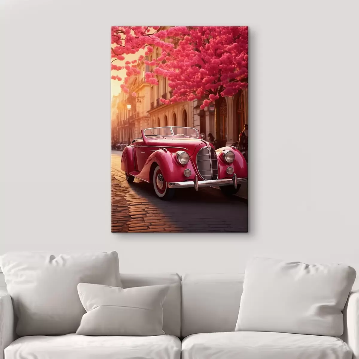 Gemälde Rosa Auto unter blühenden Bäumen Art. s47295