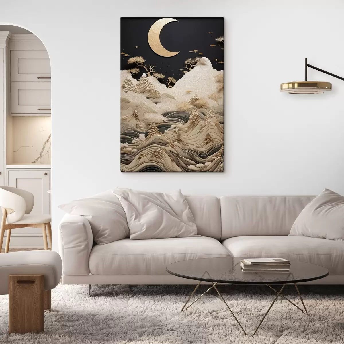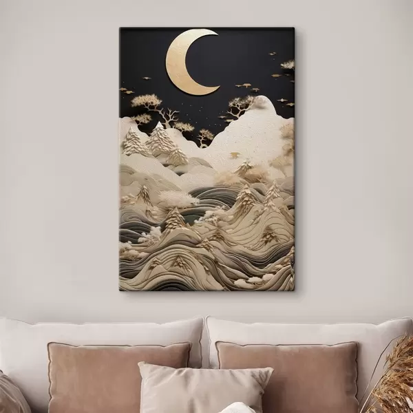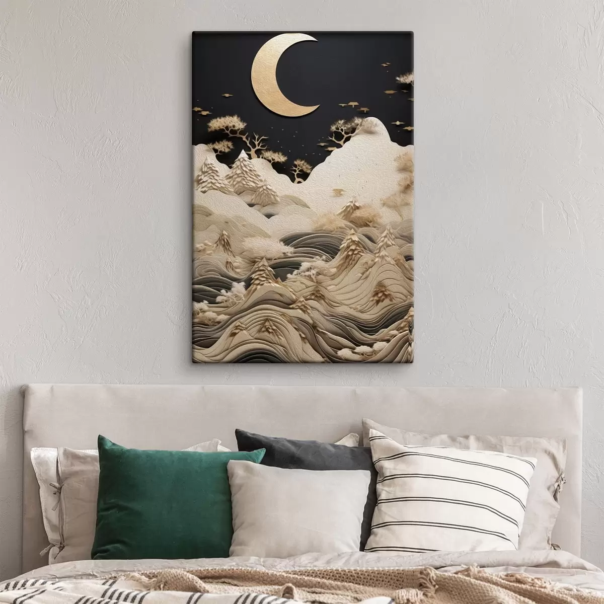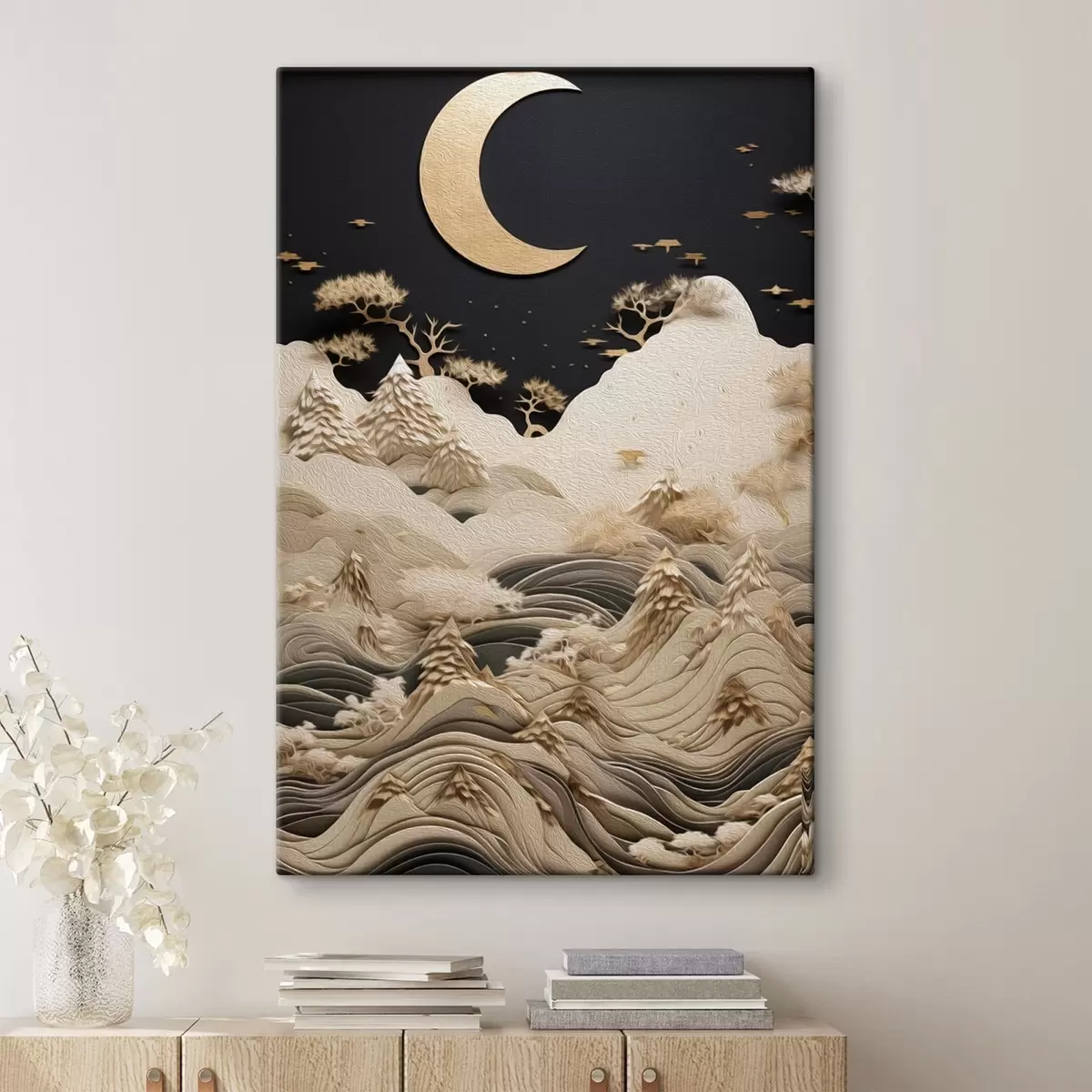 Gemälde Stilisierte Berge und Bäume unter einem Mond Art. s47300