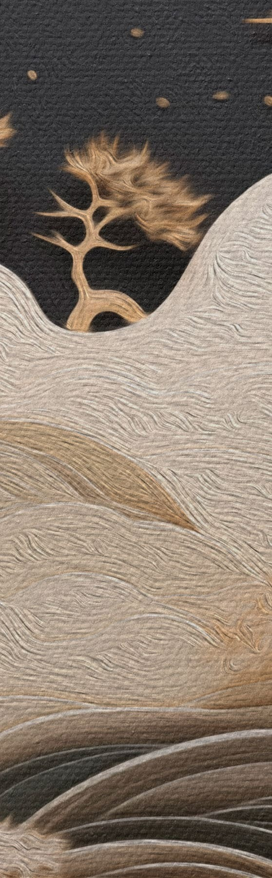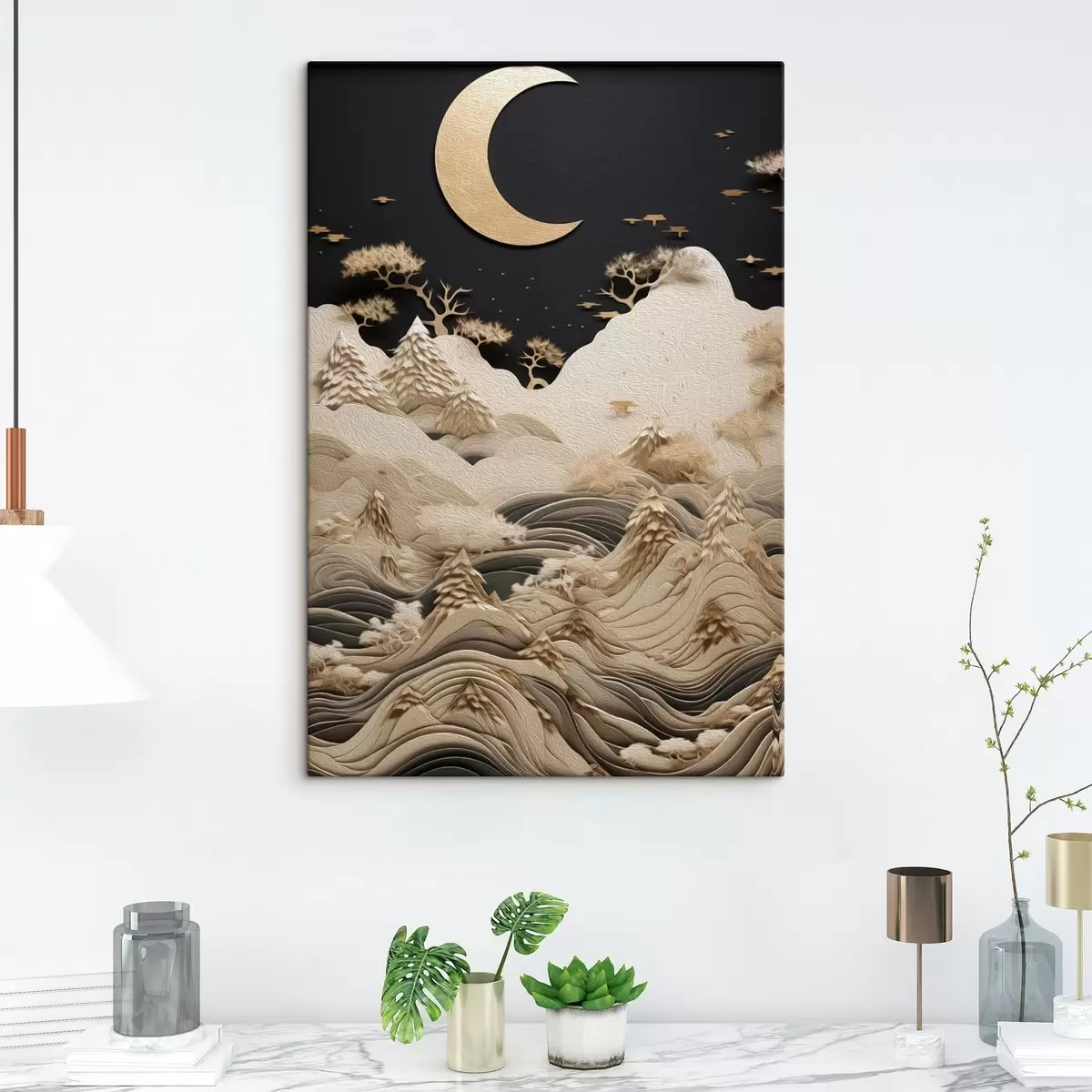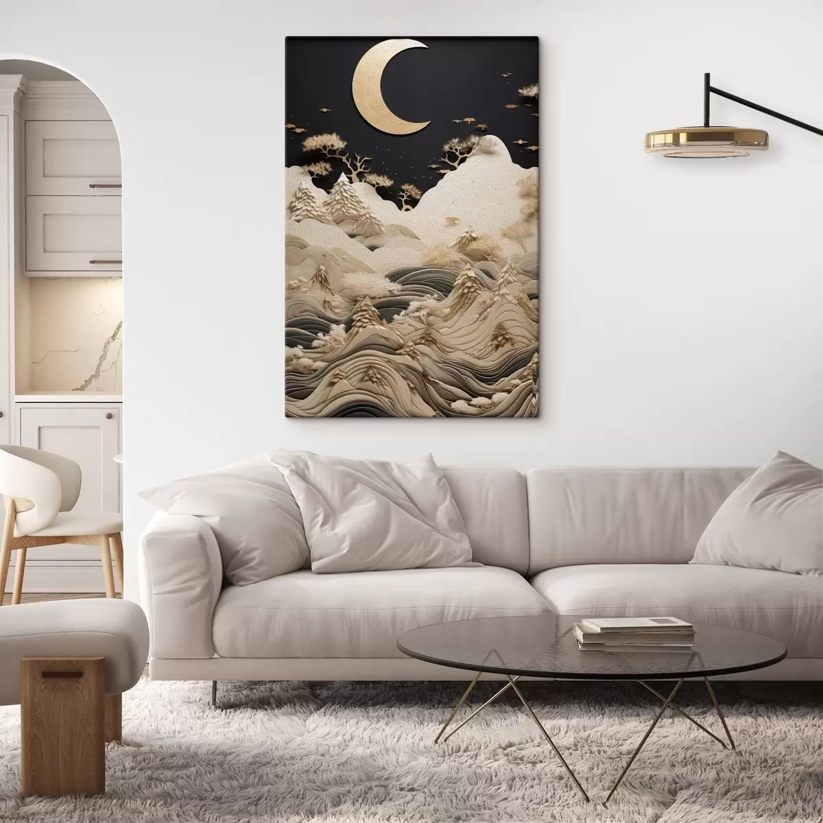 Gemälde Stilisierte Berge und Bäume unter einem Mond Art. s47300