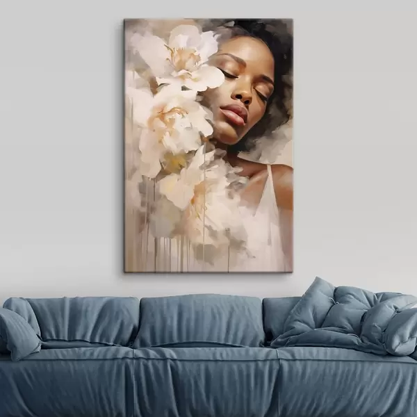 Gemälde Frauenporträt neben großen Blumen Art. s47307