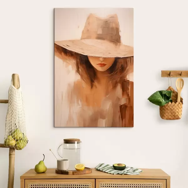 Gemälde Frau mit Hut in warmen abstrakten Strichen Art. s47312