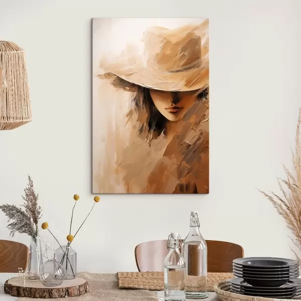 Fototapete Frau mit Hut in strukturierten, warmen Pinselstrichen s47315
