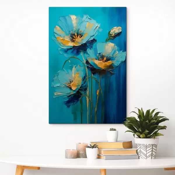 Gemälde Blaue Blumen auf einem lebhaften Hintergrund Art. s47324
