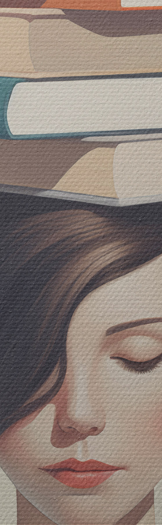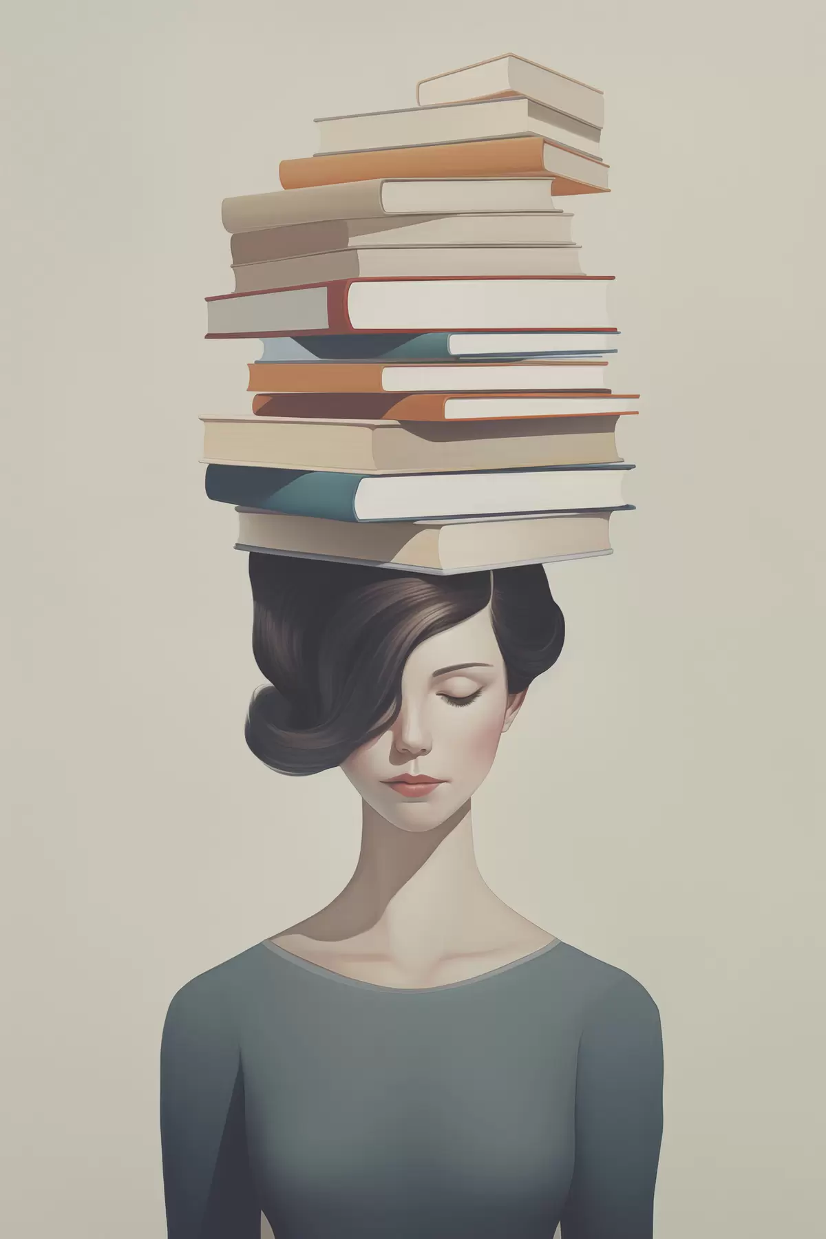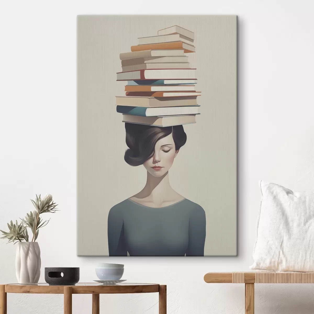 Gemälde Surreales Porträt eines Mädchens mit Büchern Art. s47334