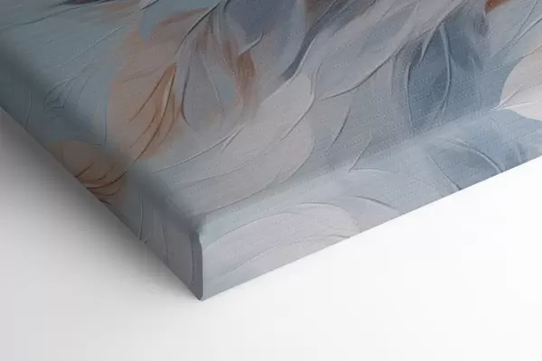 Gemälde Abstrakte Malerei von Federn in Weiß-, Blau- und Brauntönen, mit einer weichen, fließenden Textur und einem hellen Hintergrund Art. s47417