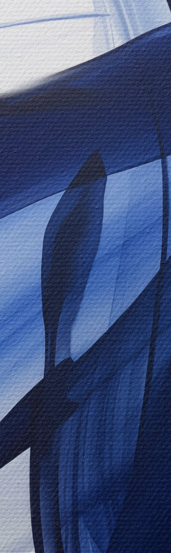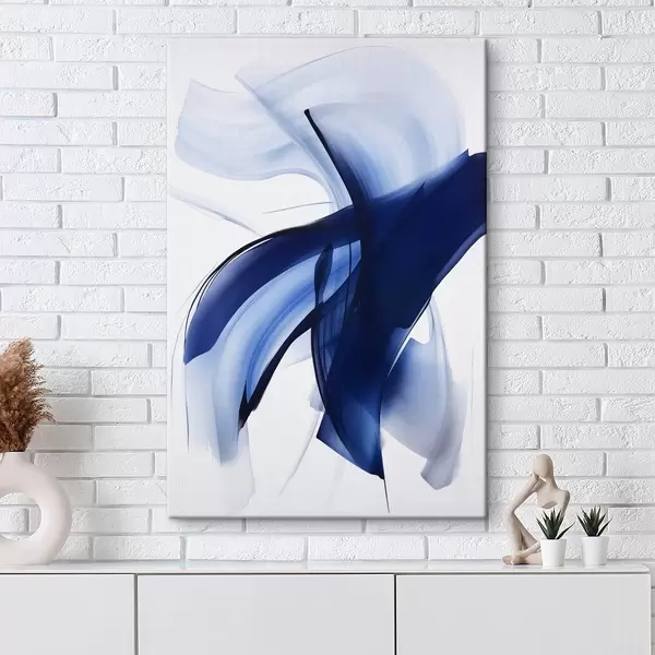 Gemälde Abstrakte blaue, pinselstrichartige Formen mit fließenden Linien und Kurven vor weißem Hintergrund, moderne Kunst Art. s47429