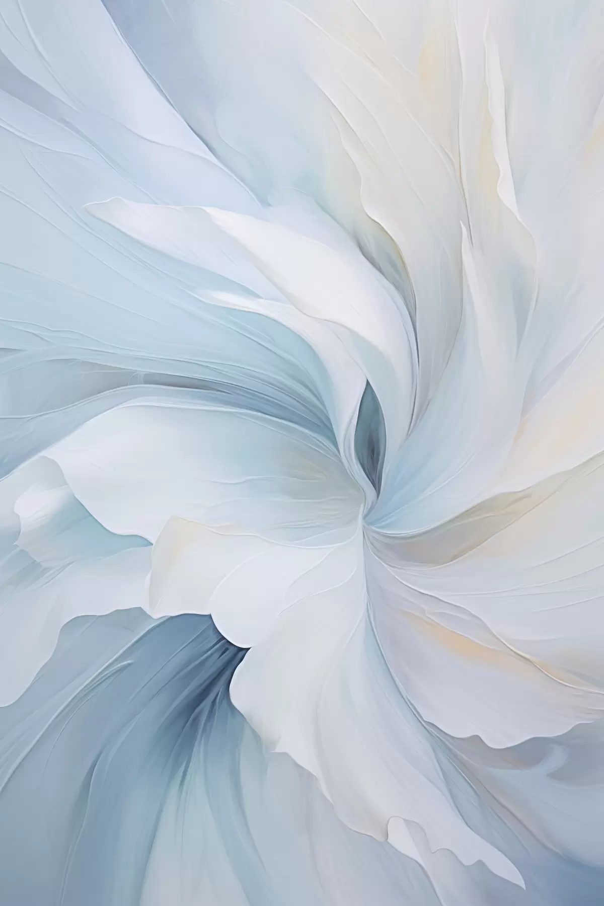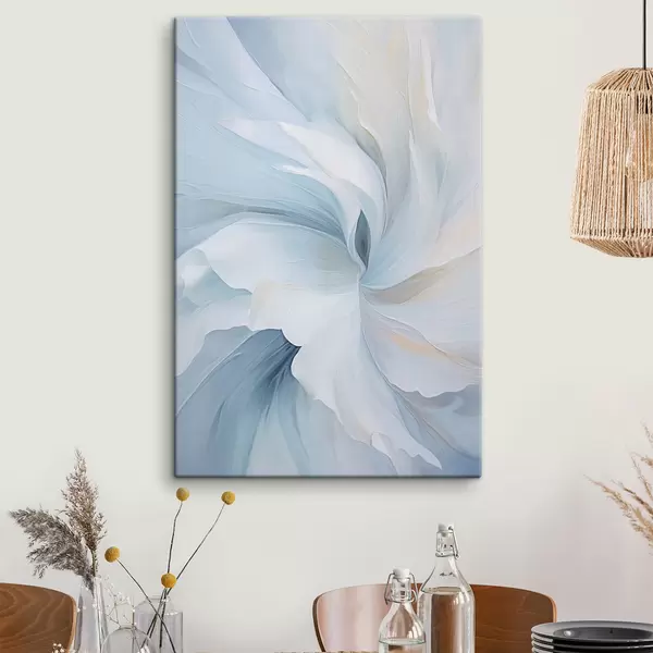 Gemälde Abstrakte, zarte, durchscheinende Blütenblätter, die sich bei sanfter Beleuchtung und einer malerischen Textur nach innen drehen. Art. s47437