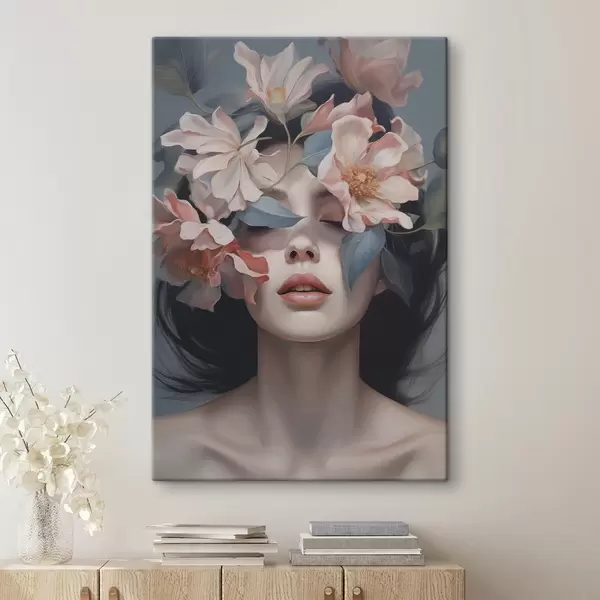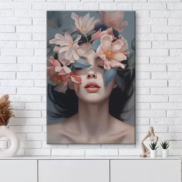 Gemälde Abstraktes Frauenporträt mit Blumen Art. s47488
