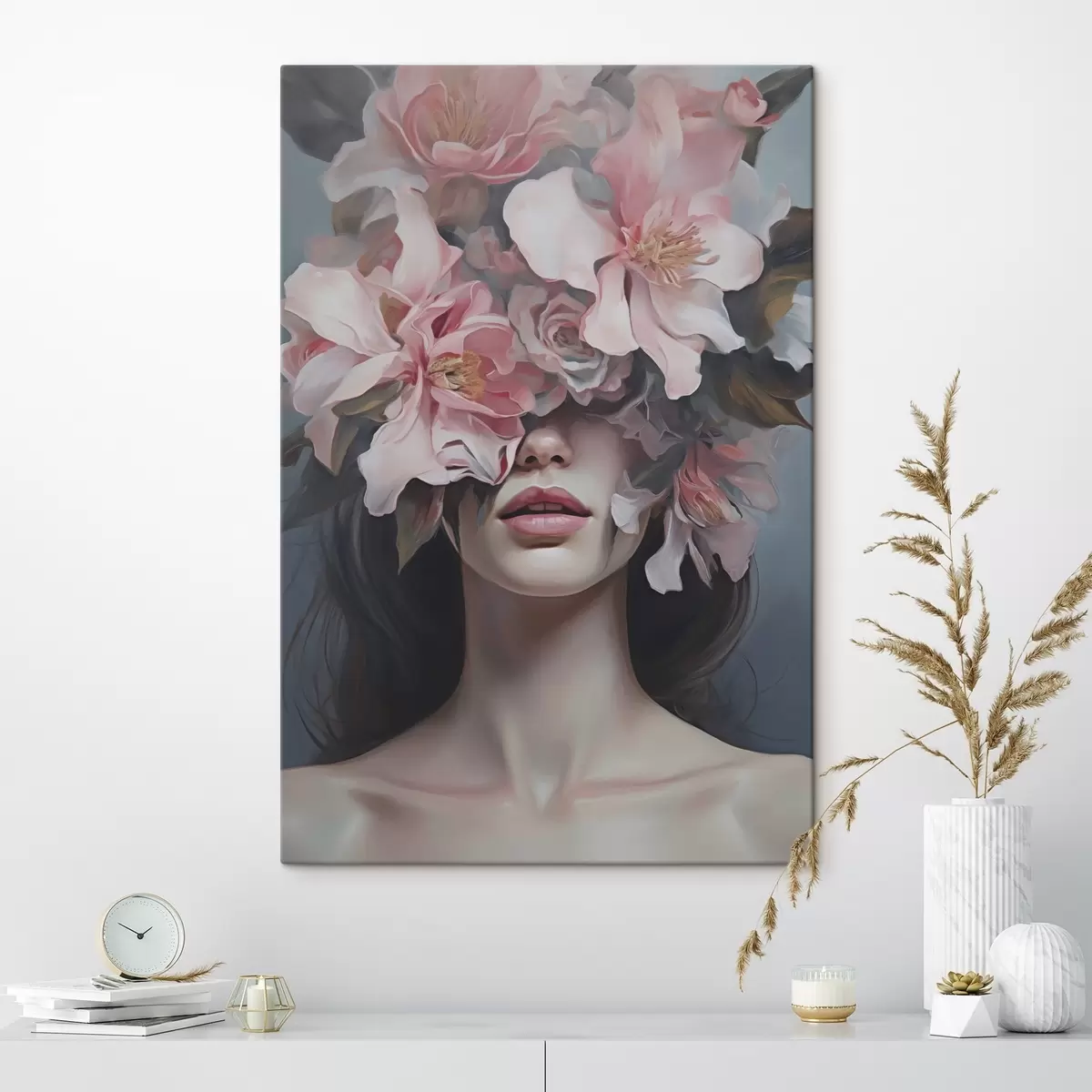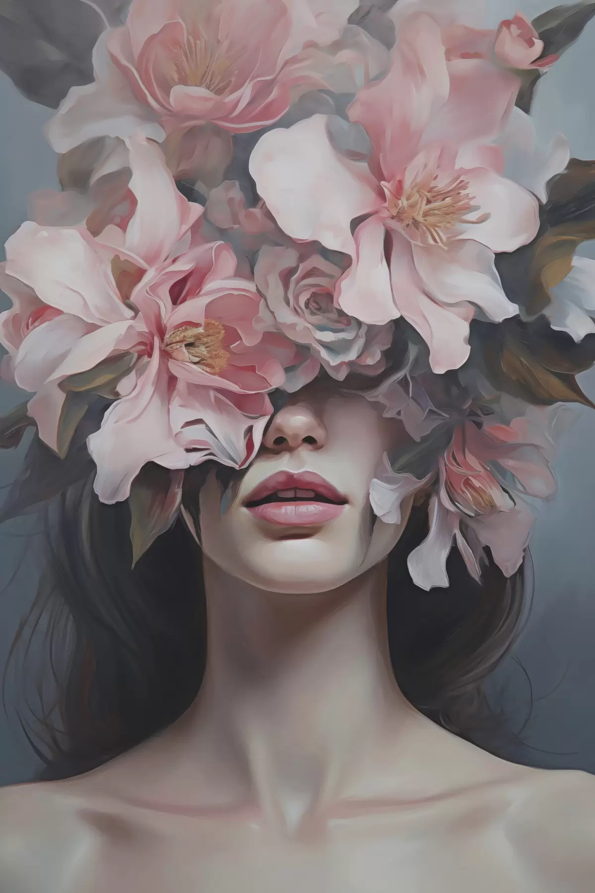 Gemälde Surrealistisches Porträt einer Frau mit Blumen Art. s47489
