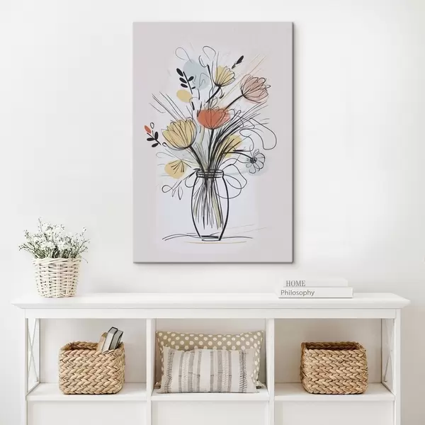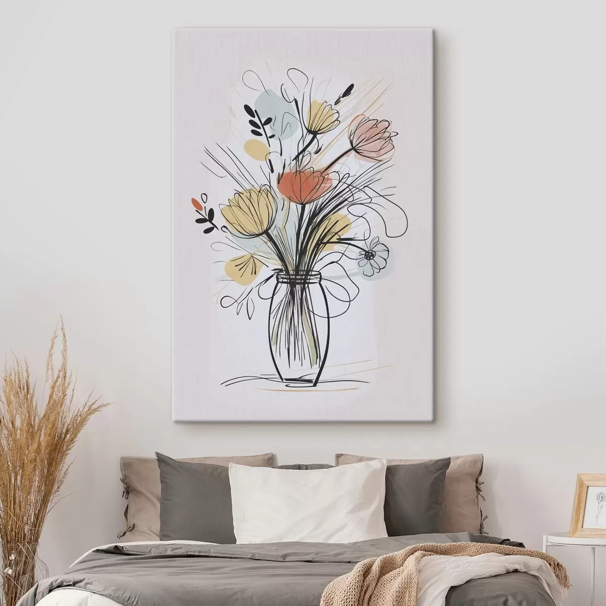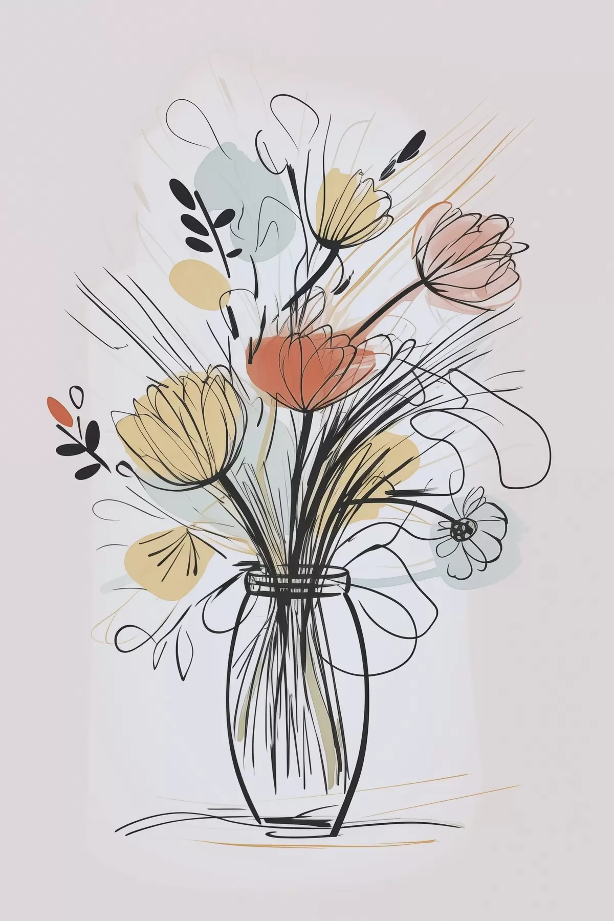 Fototapete Blumen in einer Vase, Nachahmung einer Zeichnung s47494