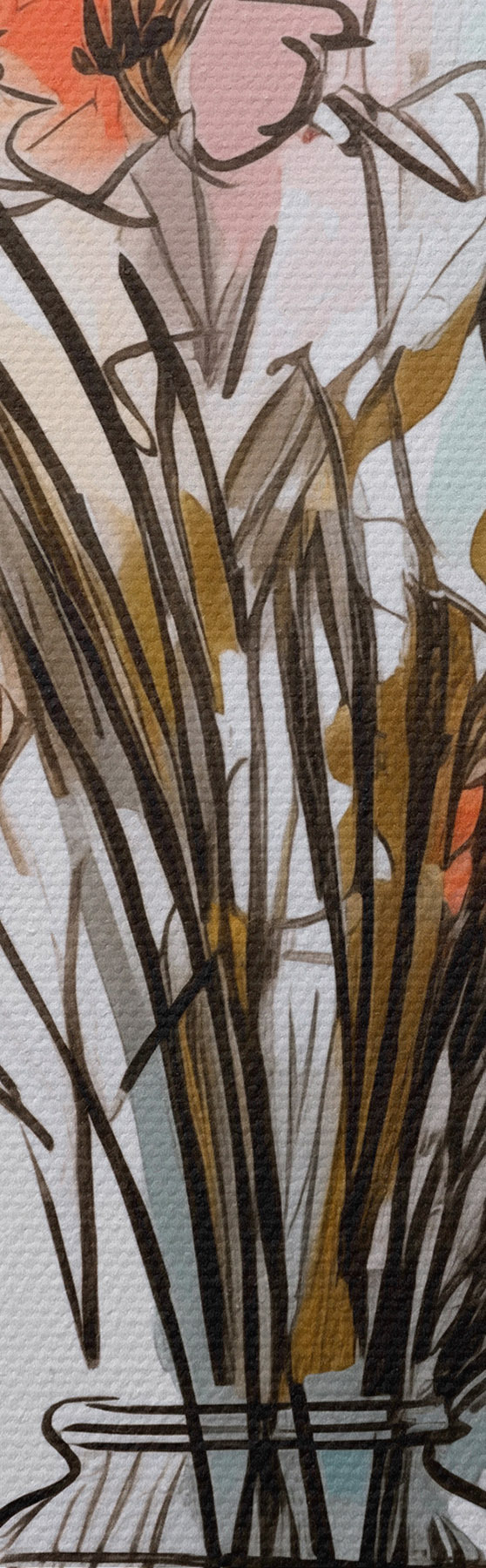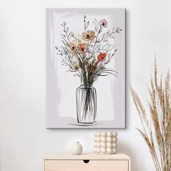 Fototapete Blumen in einer Vase, Nachahmung einer Zeichnung s47495