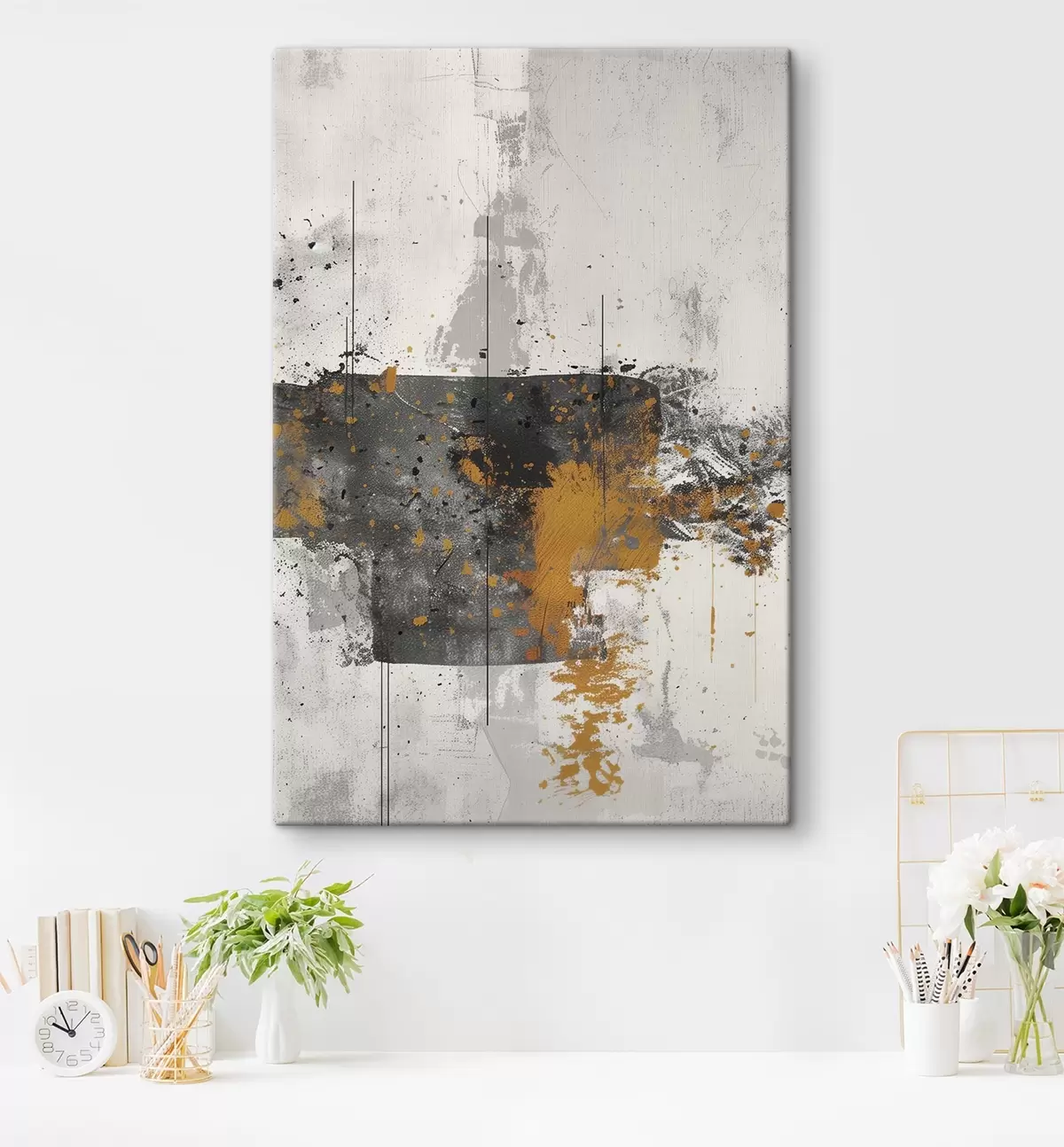 Sie können das Bild an Schrauben aufhängen. Dazu legen wir unseren Bildern Halterungen bei, mit denen Sie das Bild bequem aufhängen können.