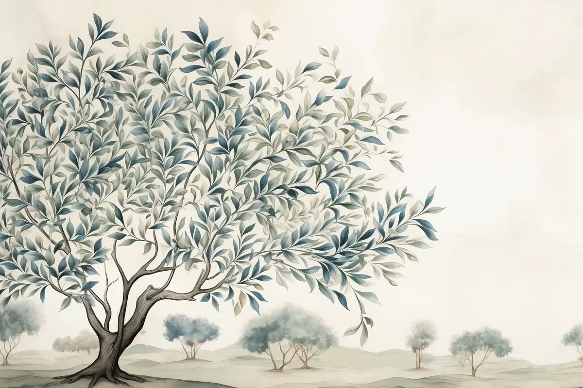 Fototapete Baum auf einem Feld, Aquarellgemälde s47705