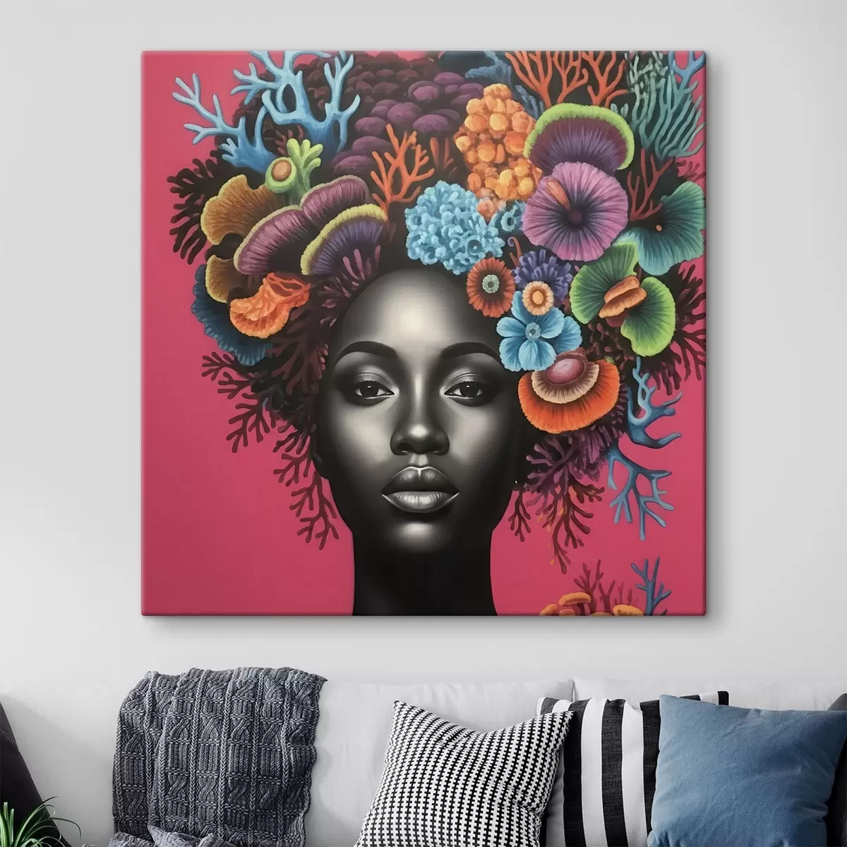 Gemälde Psychedelisches Porträt einer Frau mit Pilzen Art. s47786