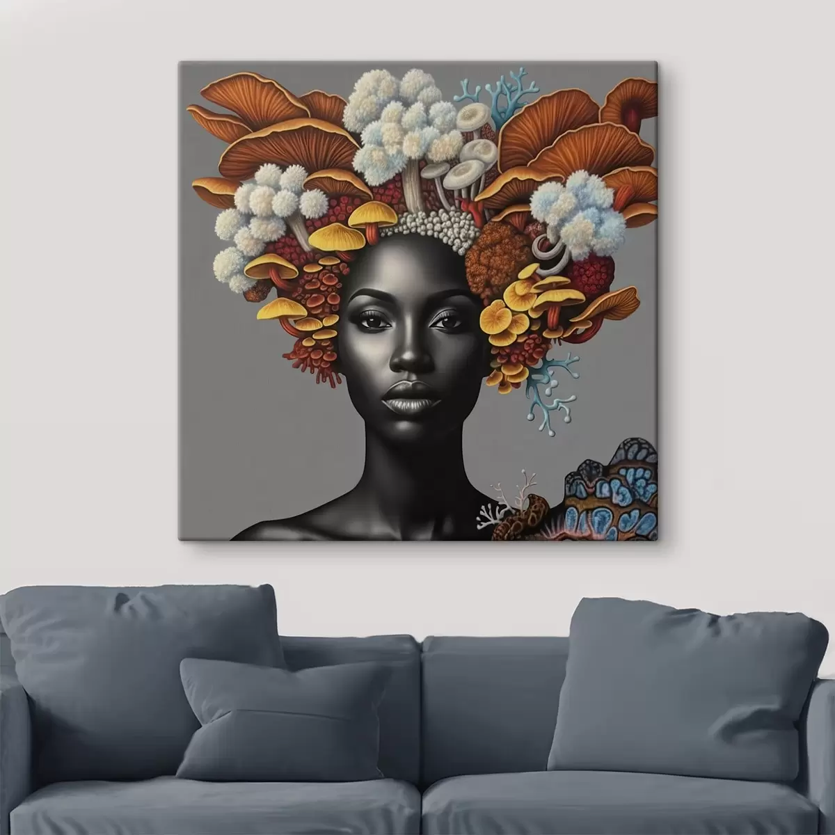 Fototapete Porträt einer Frau mit Pilzen s47788