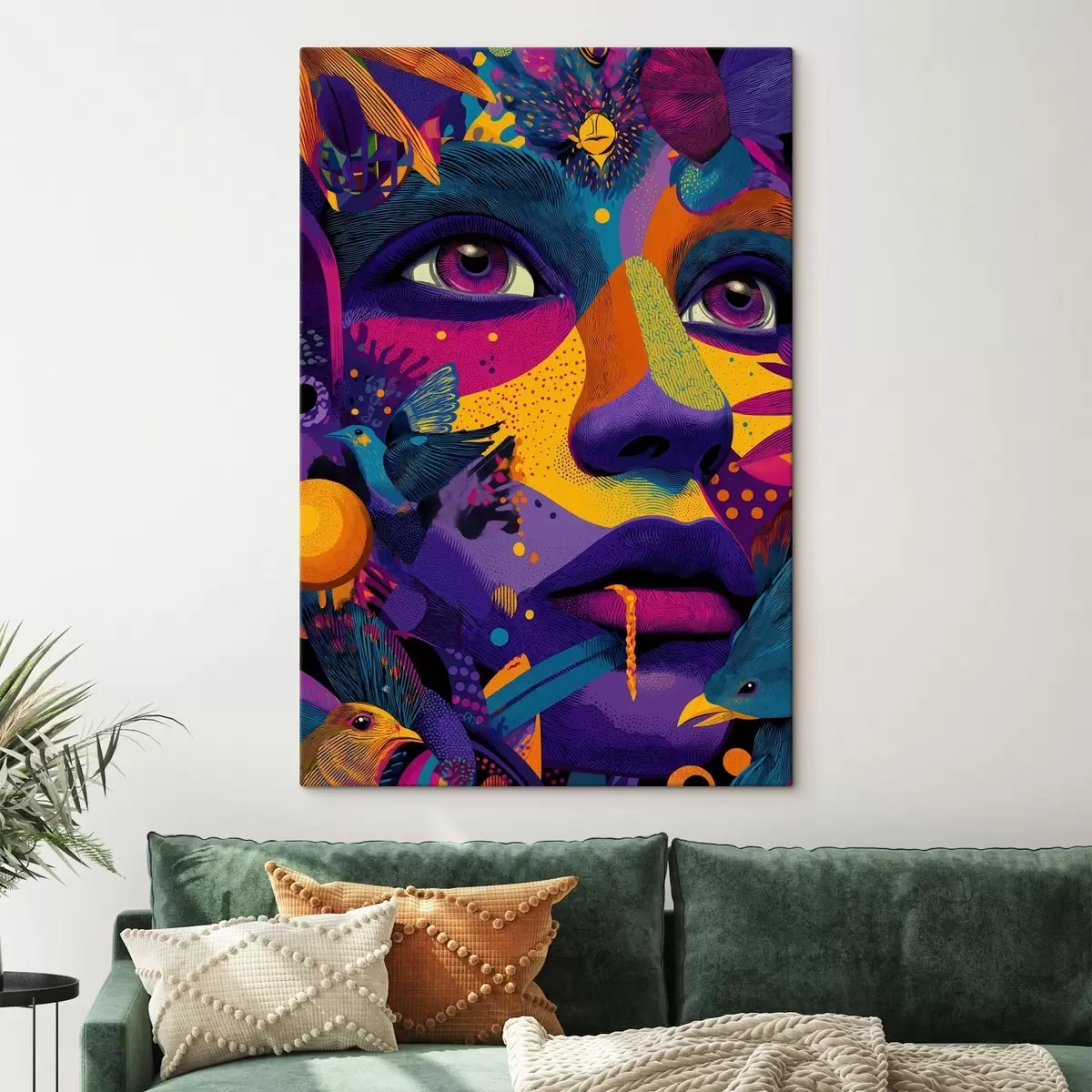 Gemälde Psychedelisches Porträt mit Vögeln Art. s47790