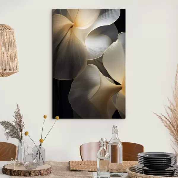 Gemälde Abstrakte, fließende, durchscheinende Blütenblätter mit zarten Linien vor einem dunklen Hintergrund Art. s47859