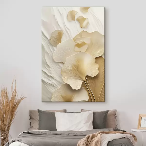 Gemälde Abstrakte Ginkgoblätter vor einem strukturierten, hellen Hintergrund, elegante und abstrakte Komposition Art. s47868