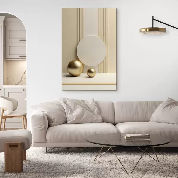 Gemälde Abstrakte beige moderne Kunst mit vertikalen Linien und Kugeln Art. s47872