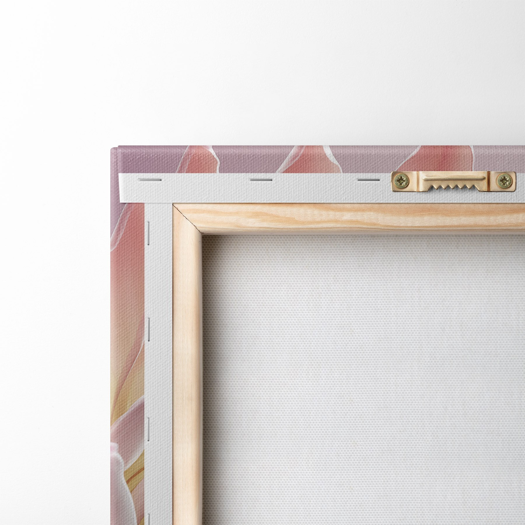 Um die Leinwand auf Keilrahmen zu spannen, ohne das Bild zu beschädigen, verwenden wir ein gespiegeltes Bild.