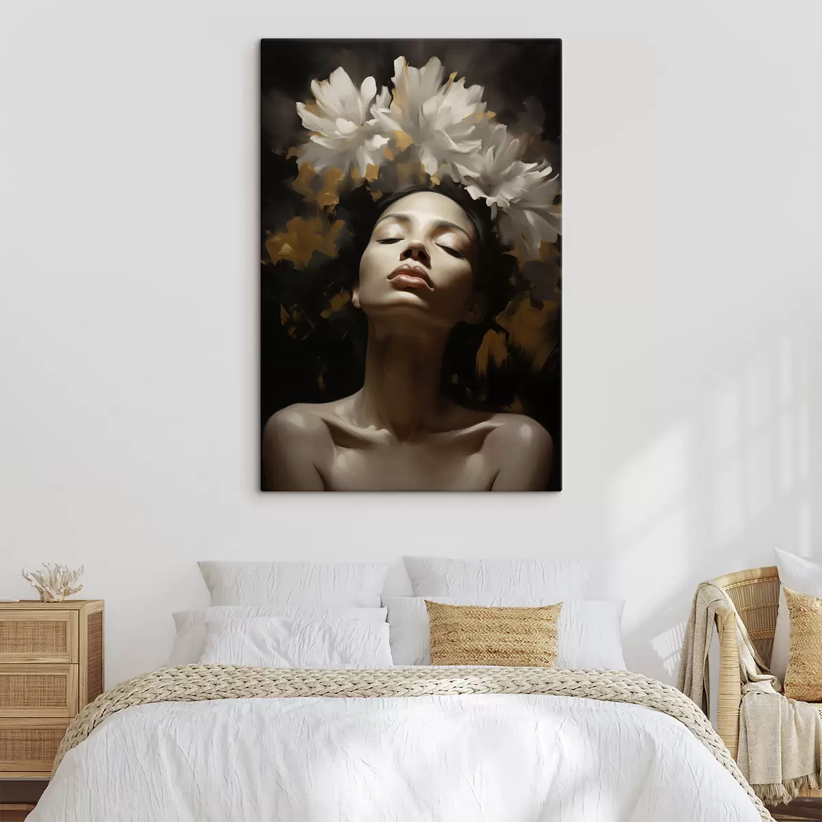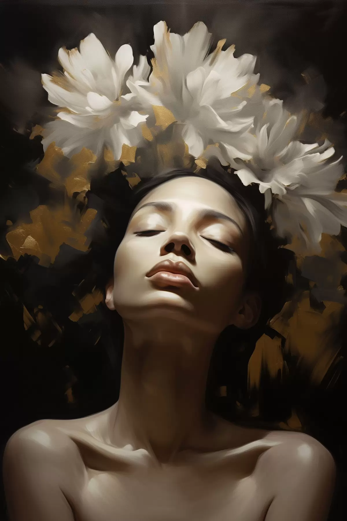 Gemälde Weibliches Porträt mit weißen Blumen Art. s47918