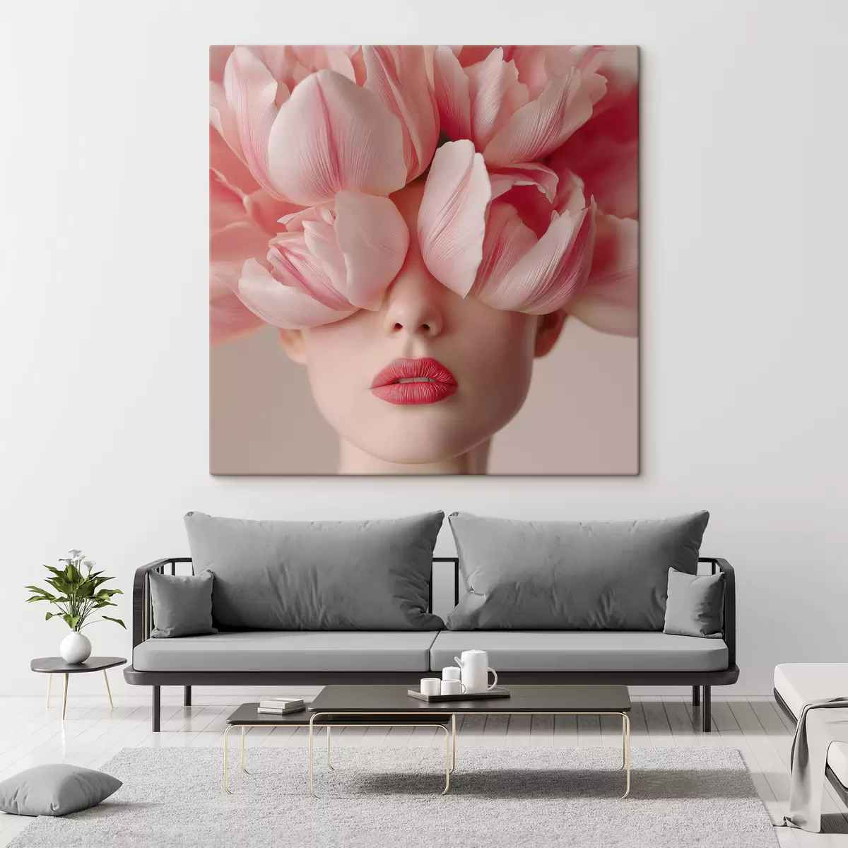 Gemälde Frauenporträt mit rosa Blütenblättern Art. s47920