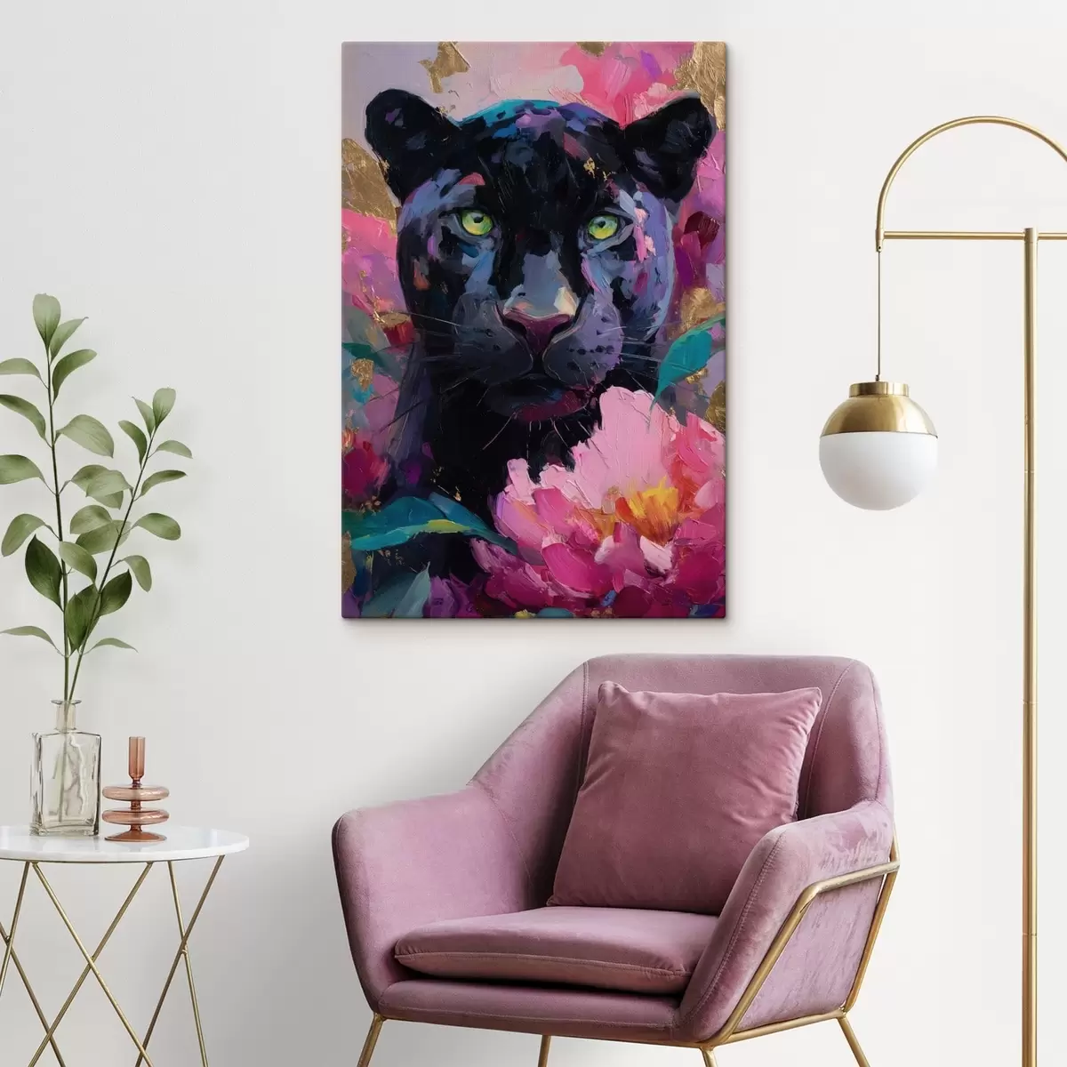 Gemälde Schwarzer Panther zwischen Pfingstrosen Art. s47935