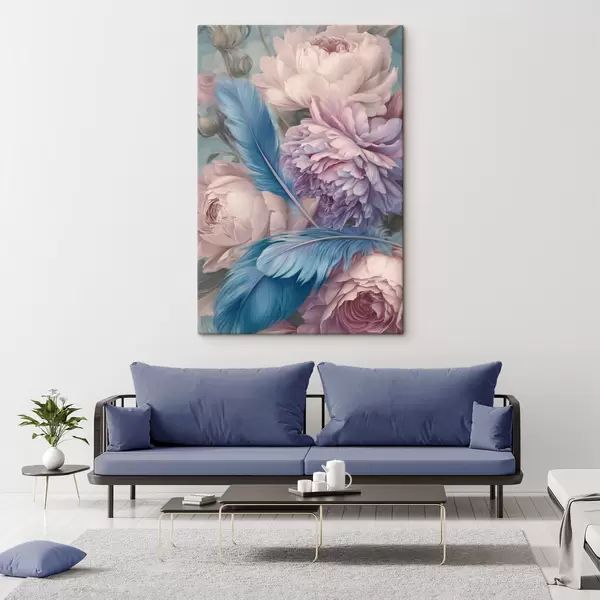 Gemälde Federn zwischen Pfingstrosen Art. s47939