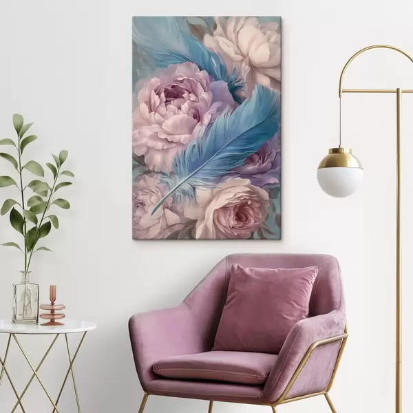 Gemälde Federn zwischen Pfingstrosen Art. s47940
