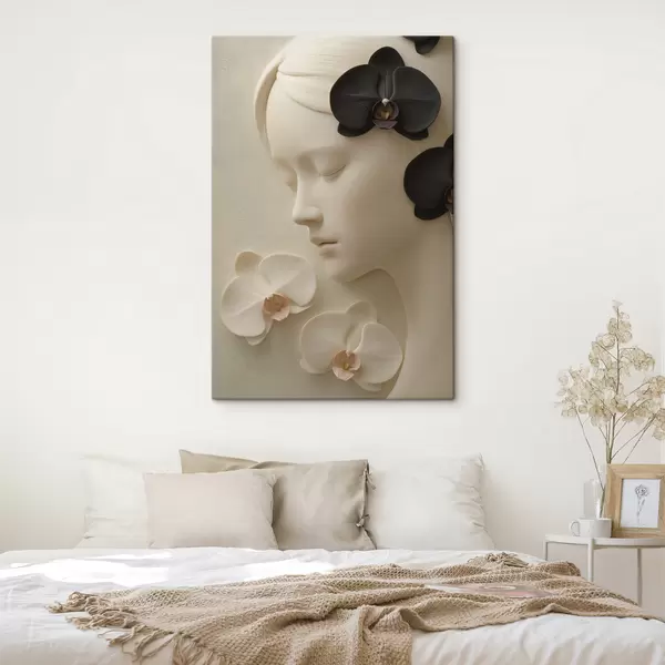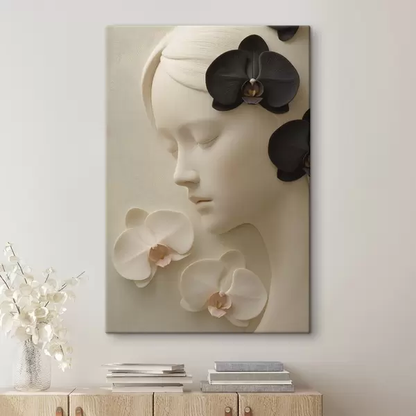 Fototapete Mädchen mit Orchideen im Flachreliefstil s47942