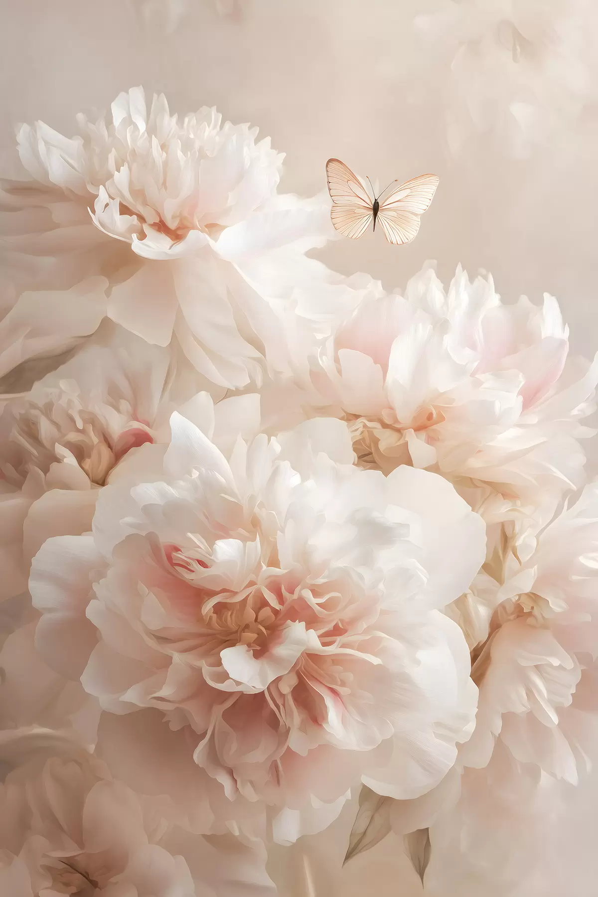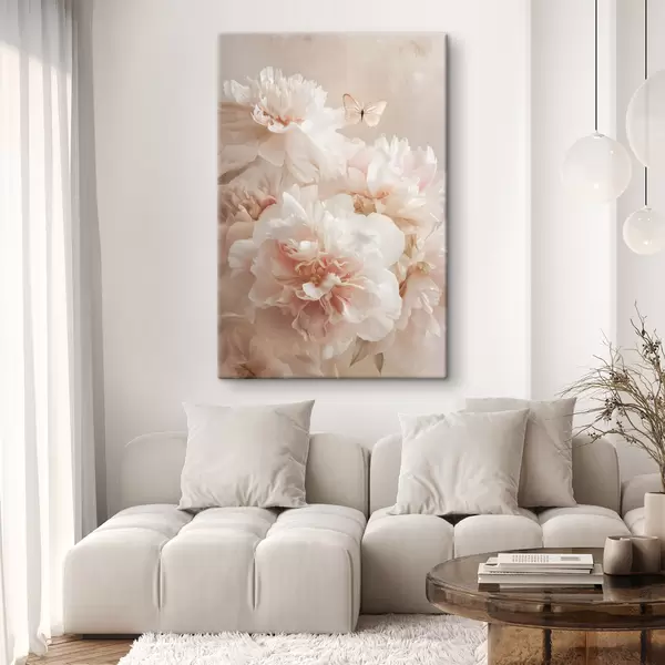 Fototapete üppige rosa Pfingstrosen mit einem Schmetterling s47954