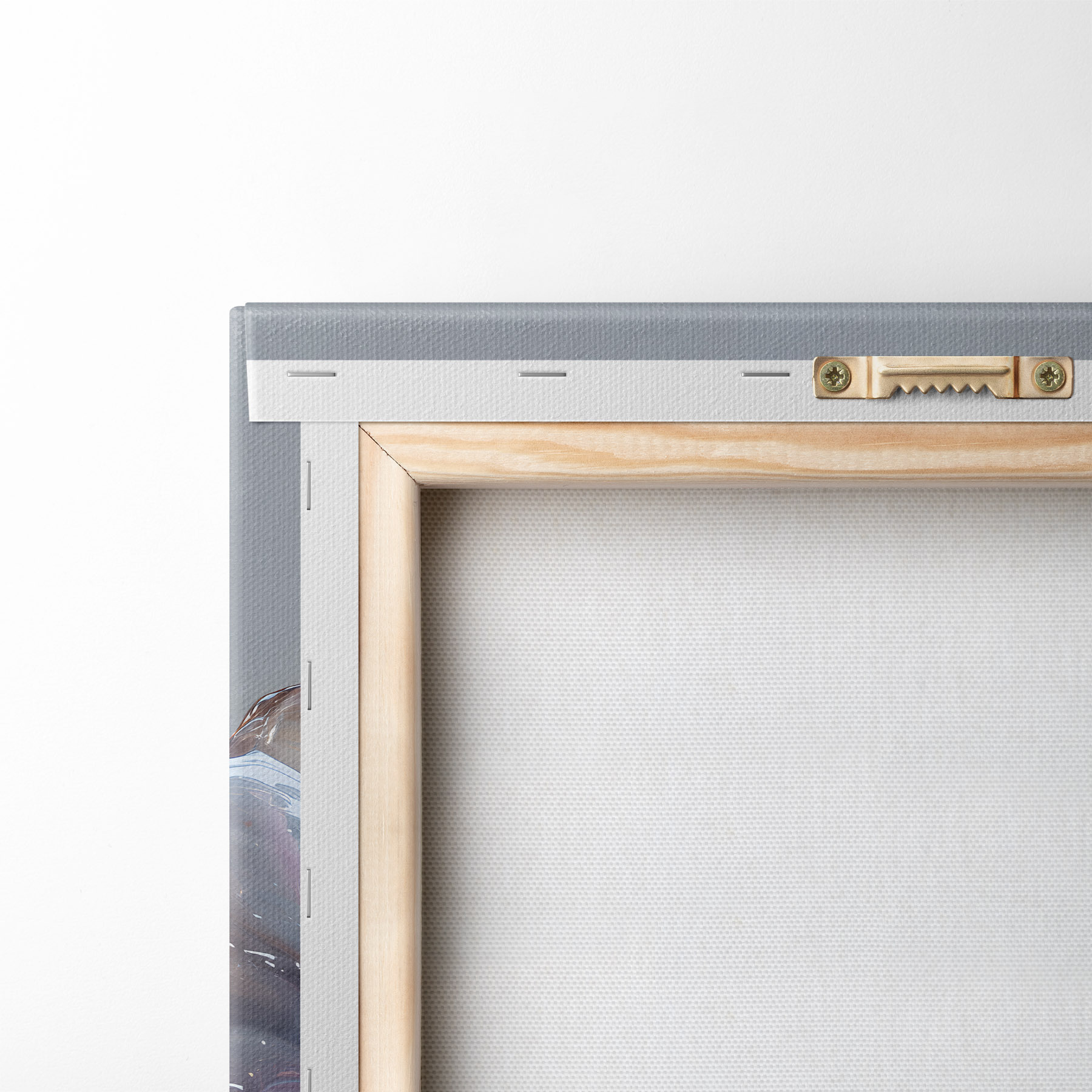 Um die Leinwand auf Keilrahmen zu spannen, ohne das Bild zu beschädigen, verwenden wir ein gespiegeltes Bild.