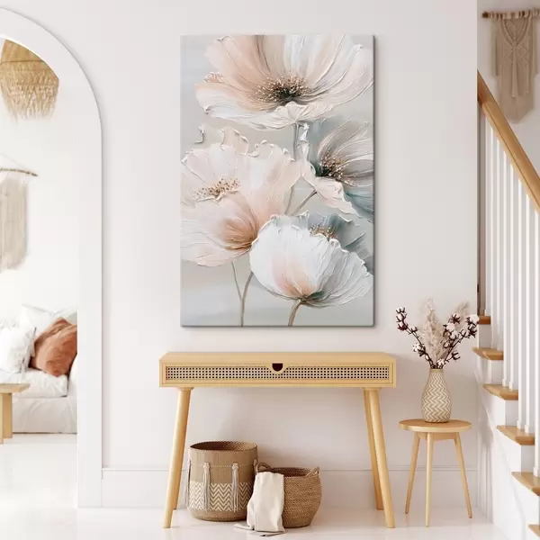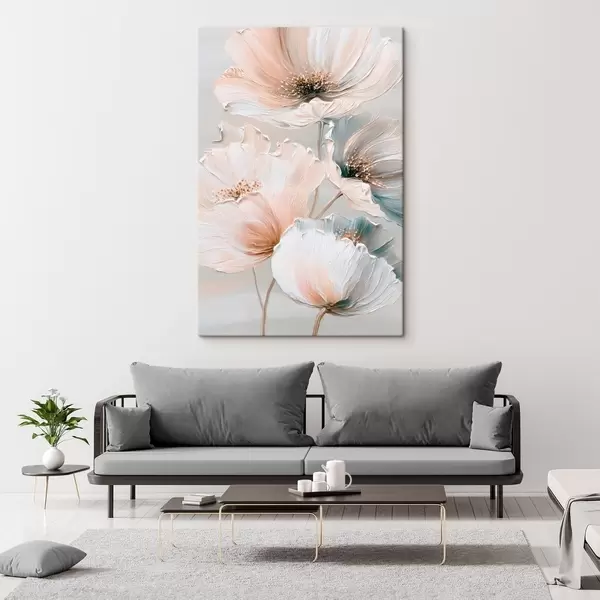 Gemälde Blumenkomposition mit strukturierten Pinselstrichen in einer beige-rosa Farbpalette Art. s47961